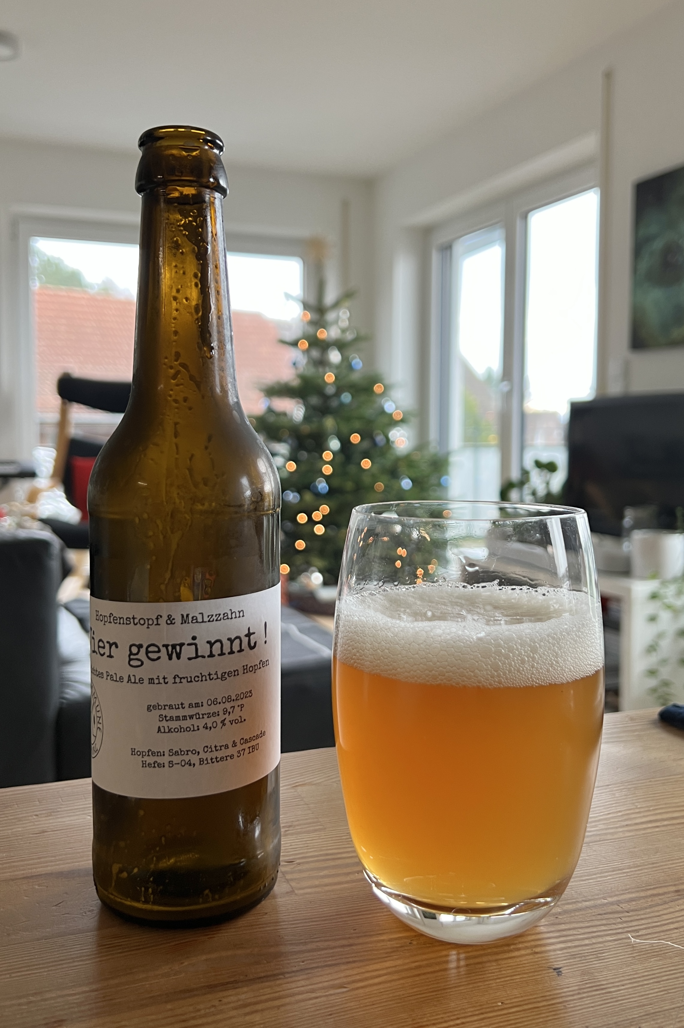 Das eigene UG Bier von hier. Geschmacklich schon ganz gut, Trübung leider noch sehr stark. Geben wir der Sache mal noch mind. 4 Wochen; bis jetzt war es nur etwas mehr als eine Woche in der Kühlung. Das ist noch zu früh.