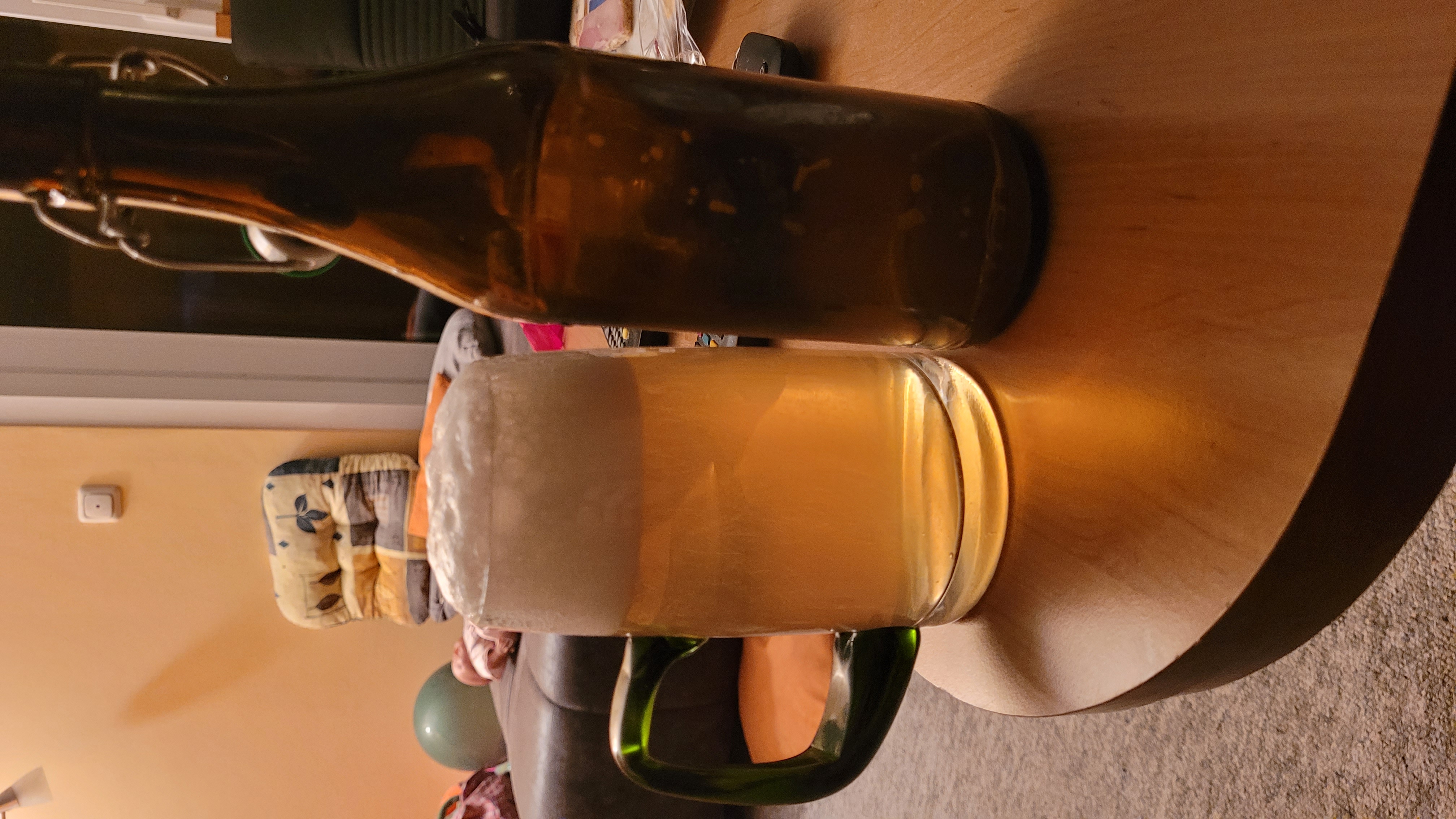 Das eigene UG Bier von hier. Geschmacklich schon ganz gut, Trübung leider noch sehr stark. Geben wir der Sache mal noch mind. 4 Wochen; bis jetzt war es nur etwas mehr als eine Woche in der Kühlung. Das ist noch zu früh.