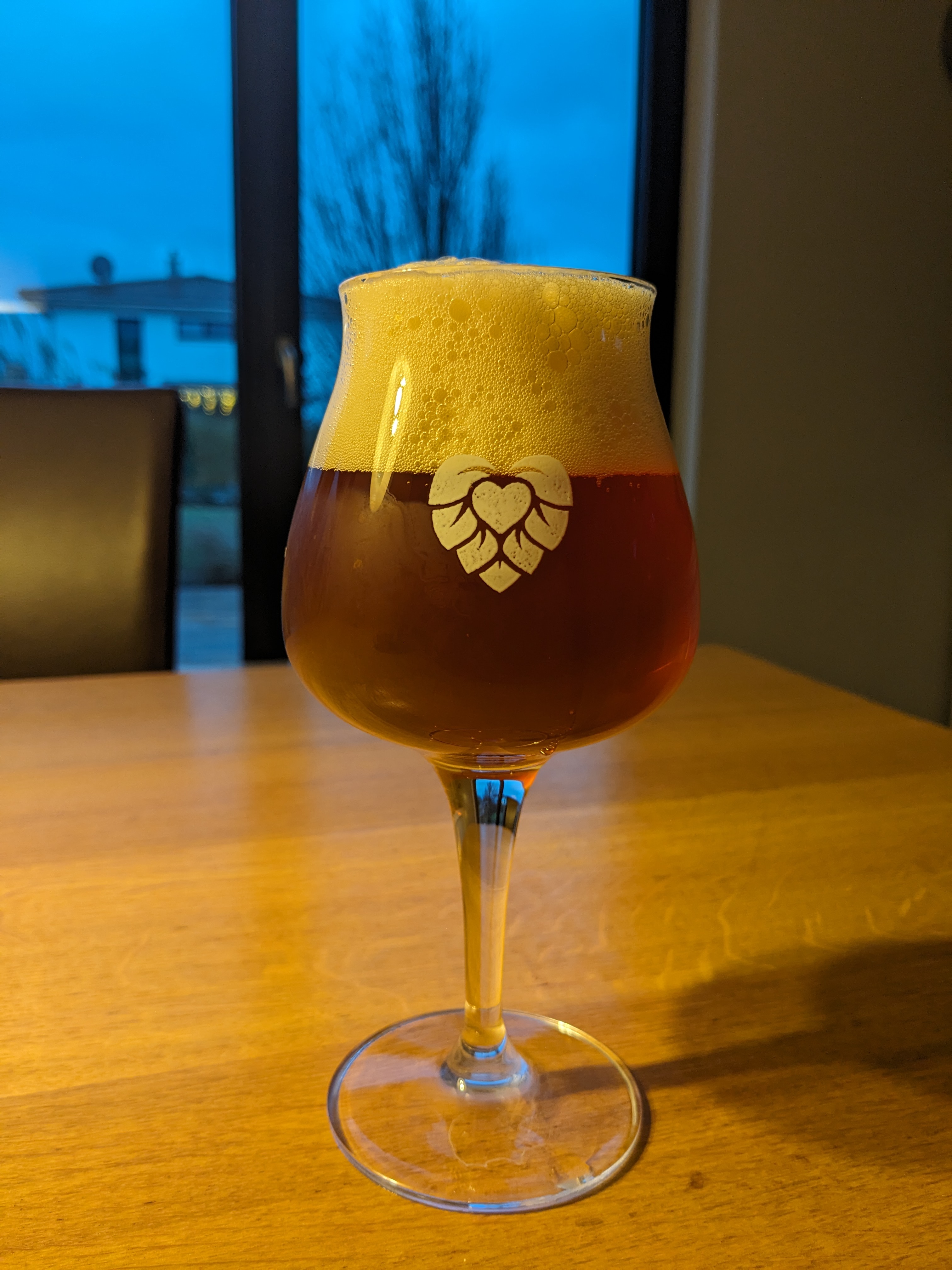 Heute ist das Weizen von Shudayo dran. Ein Bernsteinweizen, genau so wie es mir gefällt, mit etwas Karamellmalz. Der Schaum ist sehr stabil und hängt eischneeartig in Bröckchen am Glas.