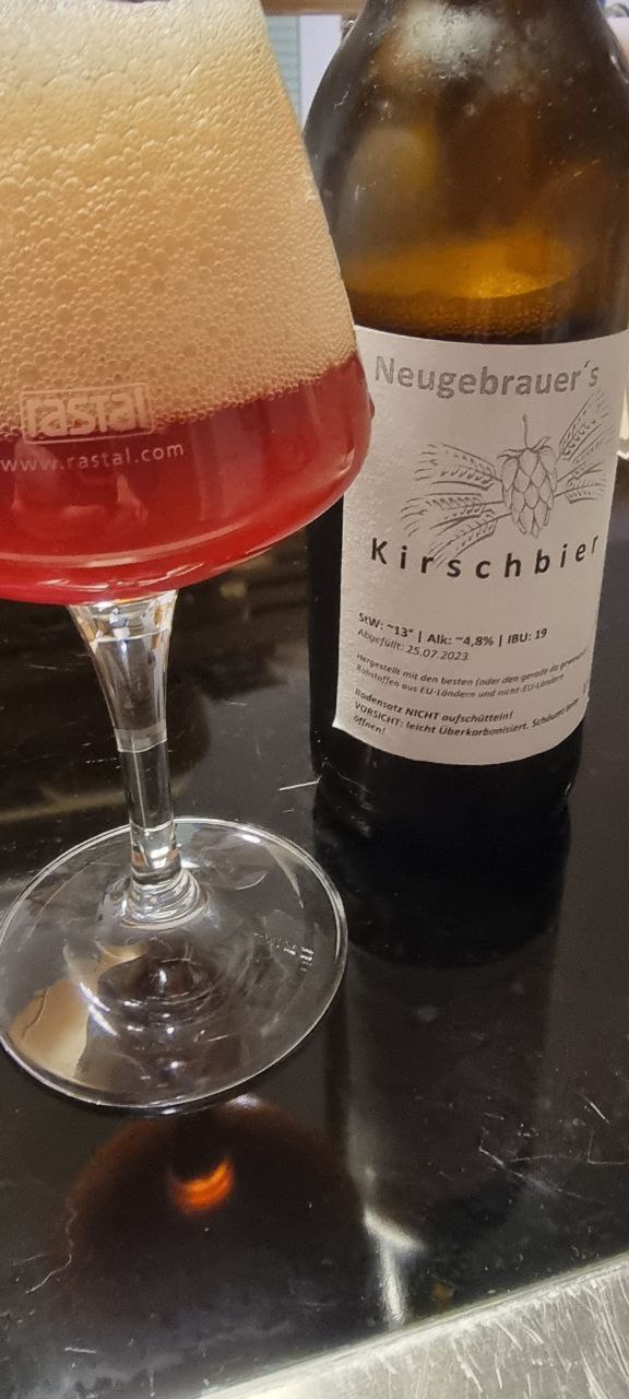 Nachdem ich genug vom Sekt hatte, gab es heute für mich noch das Kirschbier von Christian (flüssigbrot77). Mit Kirschbier hatte ich bisher wenig Erfahrung, wusste daher nicht so recht, was mich erwarten sollte. Hatte zwischen Sauerbier (nicht so mein Fall) und Kirschporter (zumindest nicht zu 100 % mein Fall) alles im Sinn; und ich war positiv überrascht: das Bier war insgesamt recht trocken, für mich eher an einem Wit dran. Die Kirsche kommt durchaus dezent durch, die Hopfenbittere ist ebenfalls (dezent) präsent. Duft leicht nach Beeren, passt gut zu dem leicht durchkommenden Kirscharoma. Mit deinen 4,8 Vol.-% auch nicht zu stark. Hat mich auf jeden Fall abgeholt!
