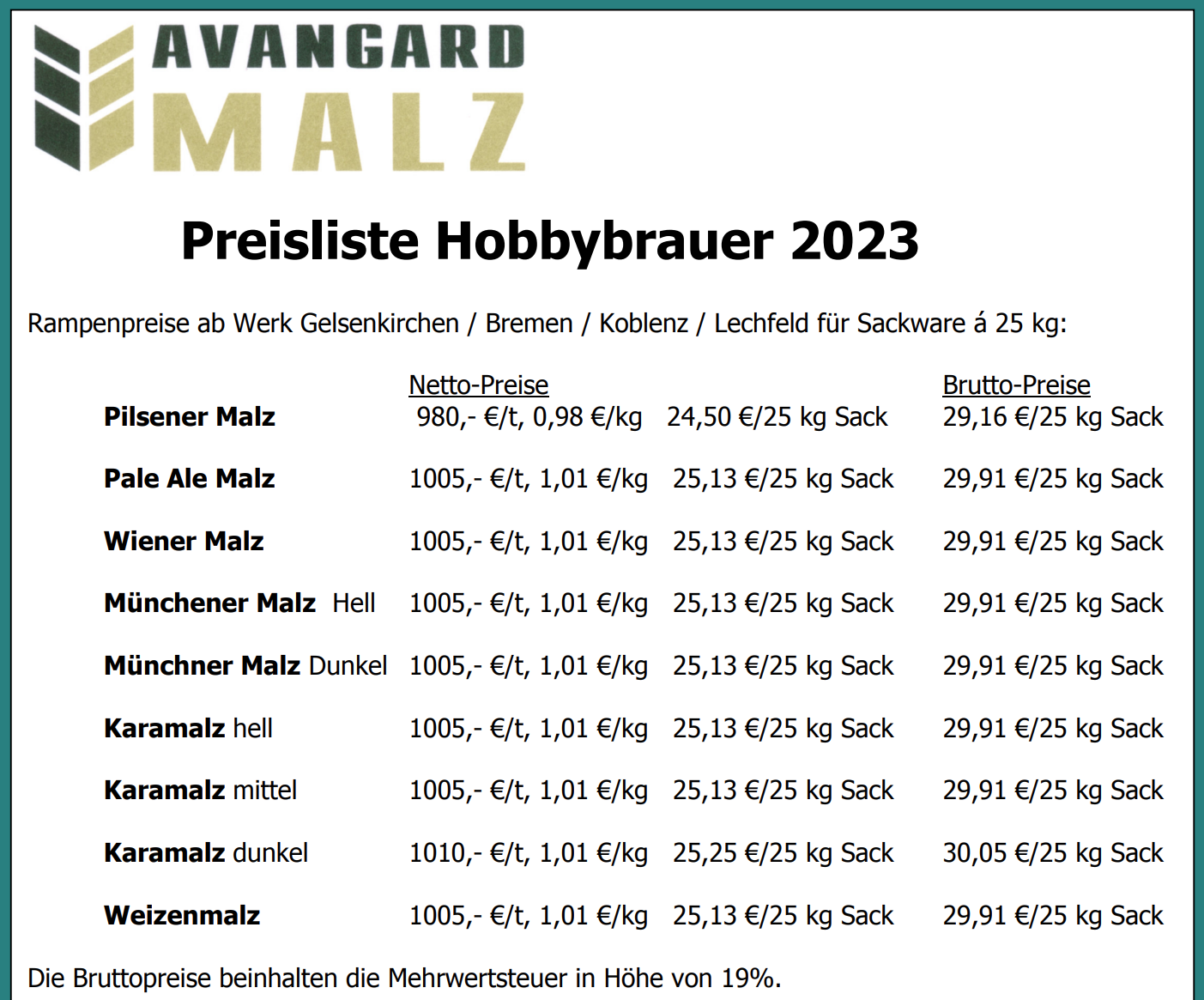 Re: Avangard Malz Bremen / Aktuelle Preise