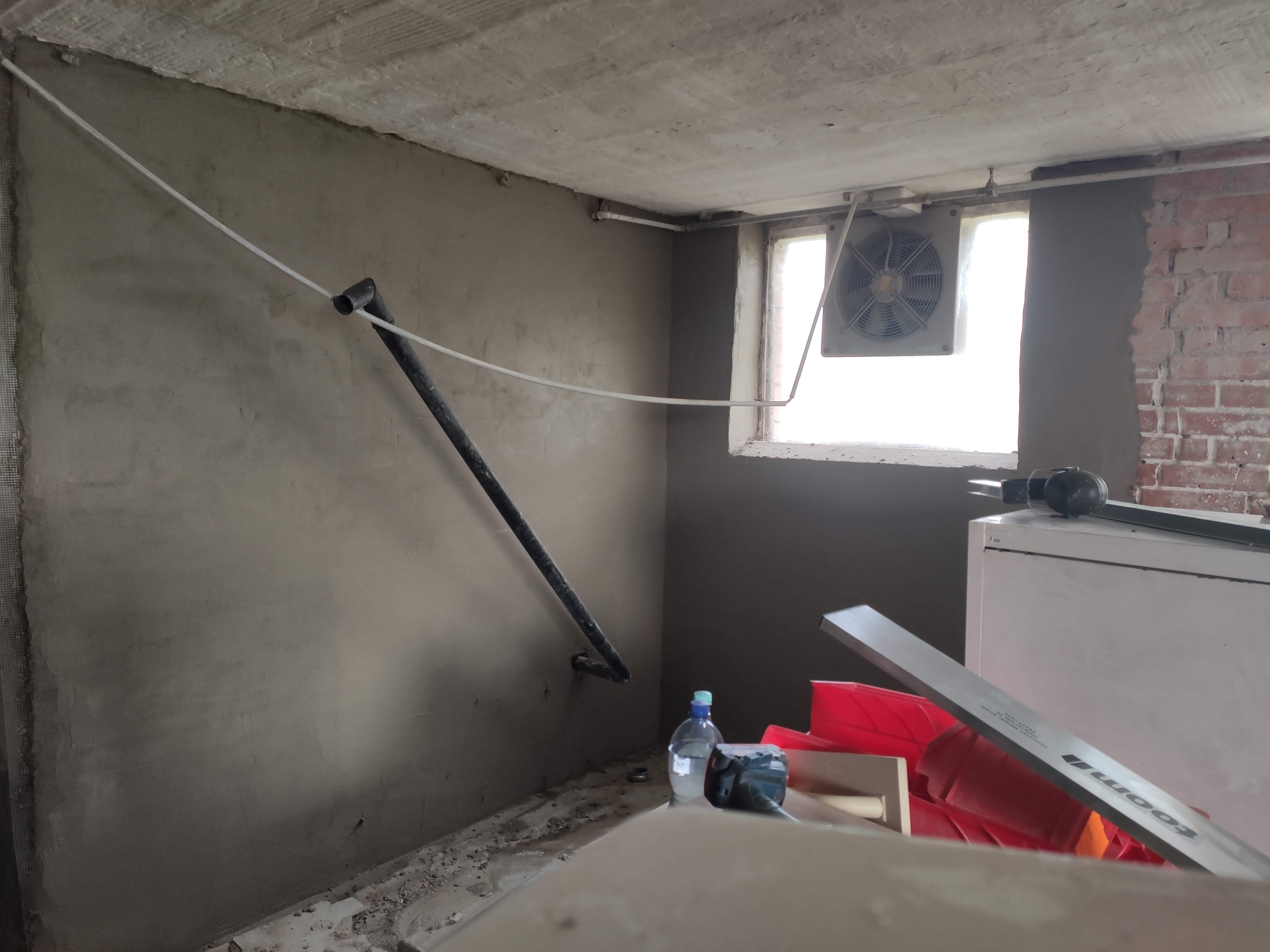 Die Wände sind eingezogen und wurden mit OSB beplankt. In den nächsten Tagen und Wochen sollen die Wände gestrichen werden und der Boden muss nochmals neu gestrichen werden. Die Bodenfarbe war anscheinend zu dick aufgetragen, denn sie ist rissig und springt direkt auf, wenn etwas zu Boden fällt. Ich habe noch 2K-Bodenbeschichtung besorgt und hoffe da auf Besserung. Die Liste, was noch fehlt ist ebenfalls um einiges länger geworden. Momentan versuche ich herauszufinden, ob ich den Strom des Lüfters direkt weiter zum Braukessel ziehen kann oder ob der Querschnitt das nicht aushält. Vielleicht probiere ich das einfach einmal aus und schaue was passiert, aber vielleicht gibt es hier wieder Leute vom Fach, die mir weiterhelfen können. Der Lüfter hat laut Etikett 0.24kW und die Brauanlage 3.5kW