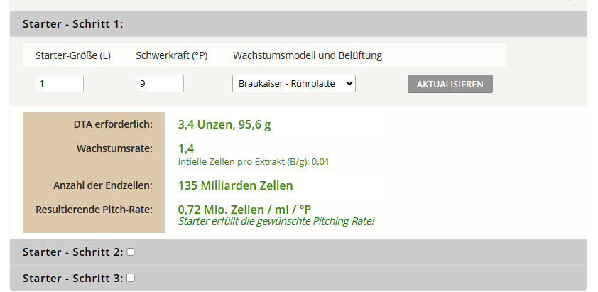 Danach wird mit einem Rührknochen die Würze täglich gerührt, sodass die Hefe in der Suspension bleibt und nicht sedimentiert. 24 Std später gebe ich die nächste Würzemenge hinzu und verfahre so weiter, bis ich die 1500 ml erreicht habe, oder?