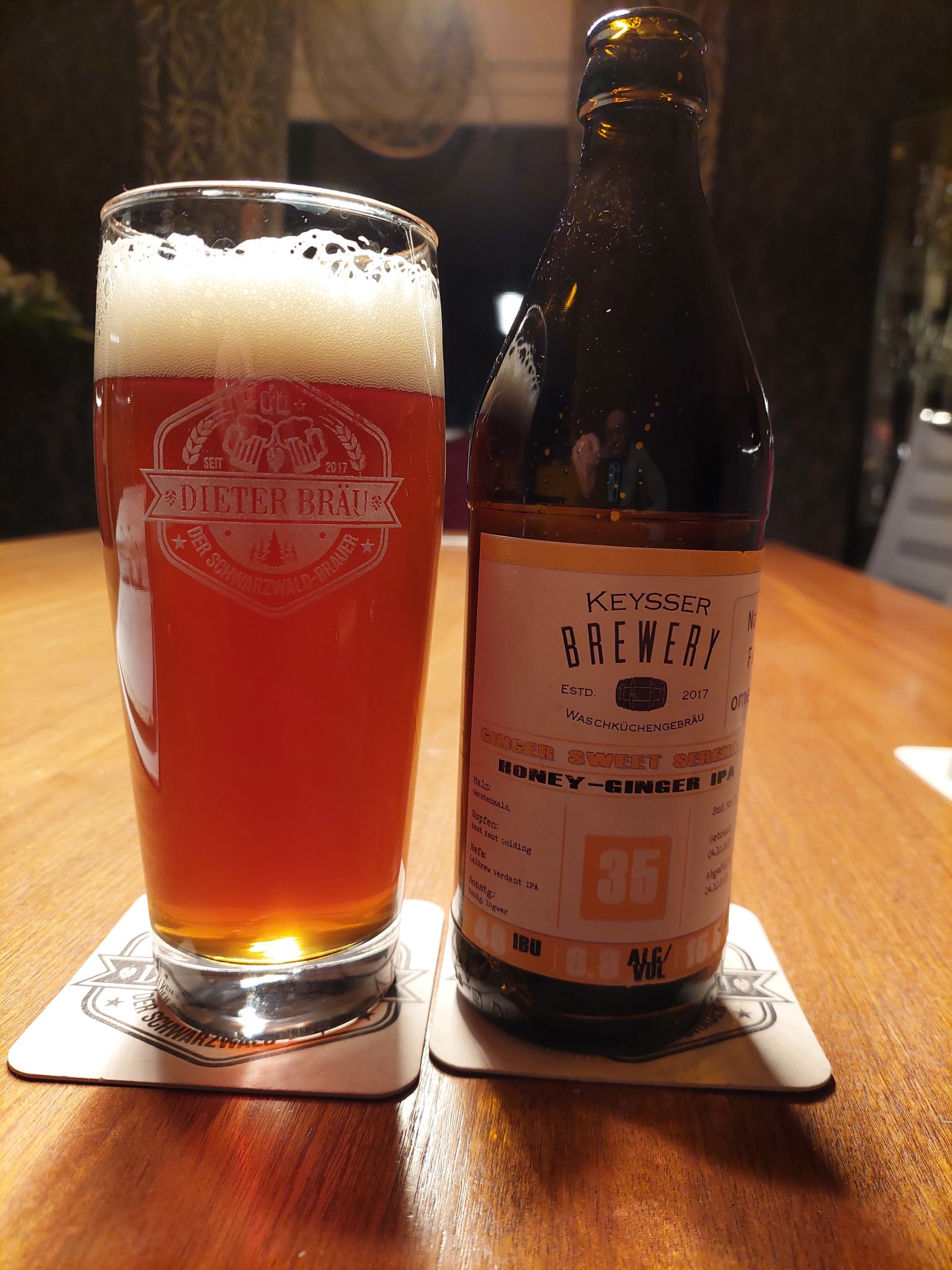 Geschmacklich einen balancierter Malzkörper, eine schöne Hopfenbitterkeit und eine sehr schöne, für mich überraschende, Frische von frischem Ingwer, welche recht lange im Mund bleibt.