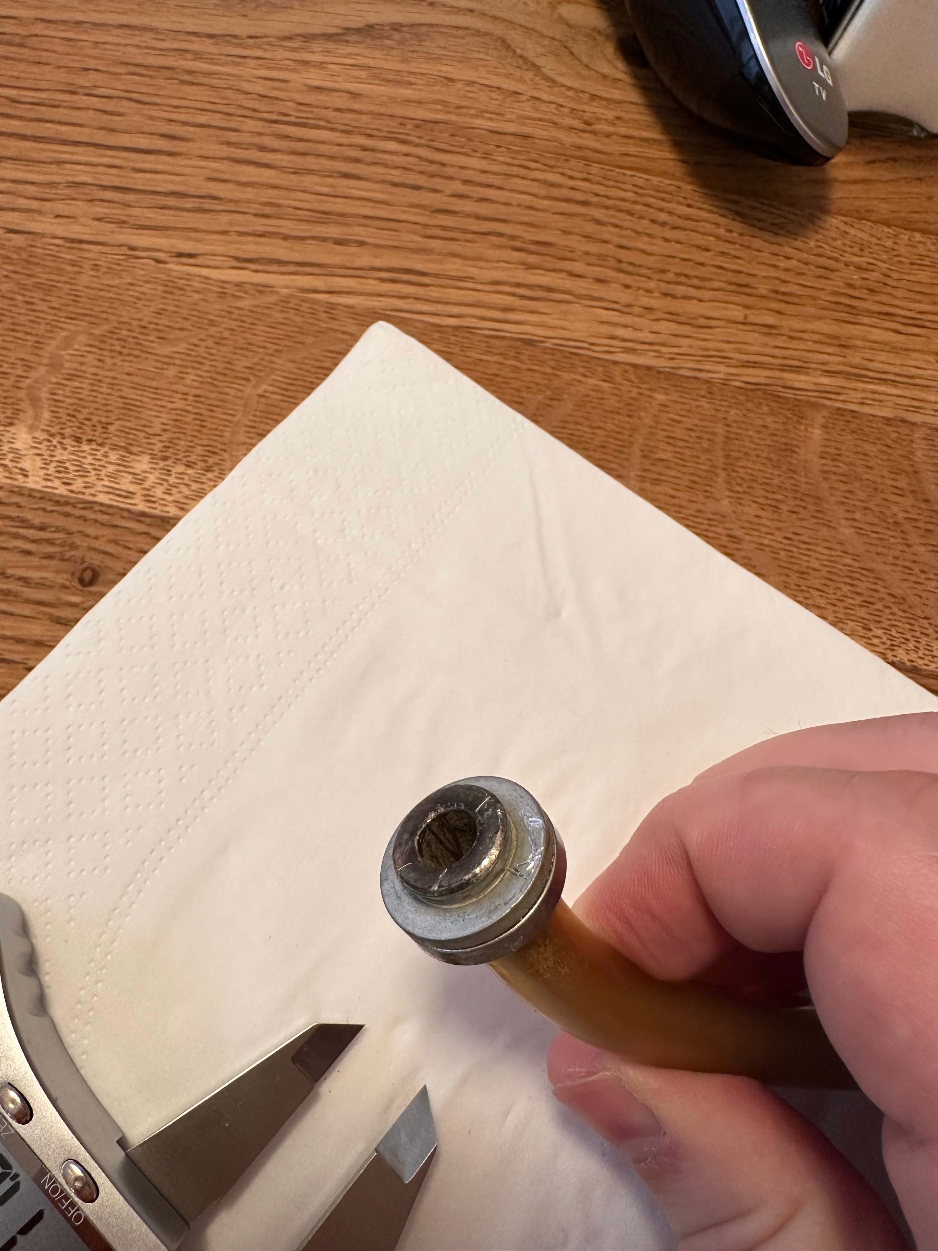 Ich hab noch nicht versucht, die Tülle zu lösen. Wollte sie ganz behalten bis wir einen Ersatz gefunden haben. Wir kommen aber nicht wohl drum herum. Entweder das, oder eine neue Säule kaufen.