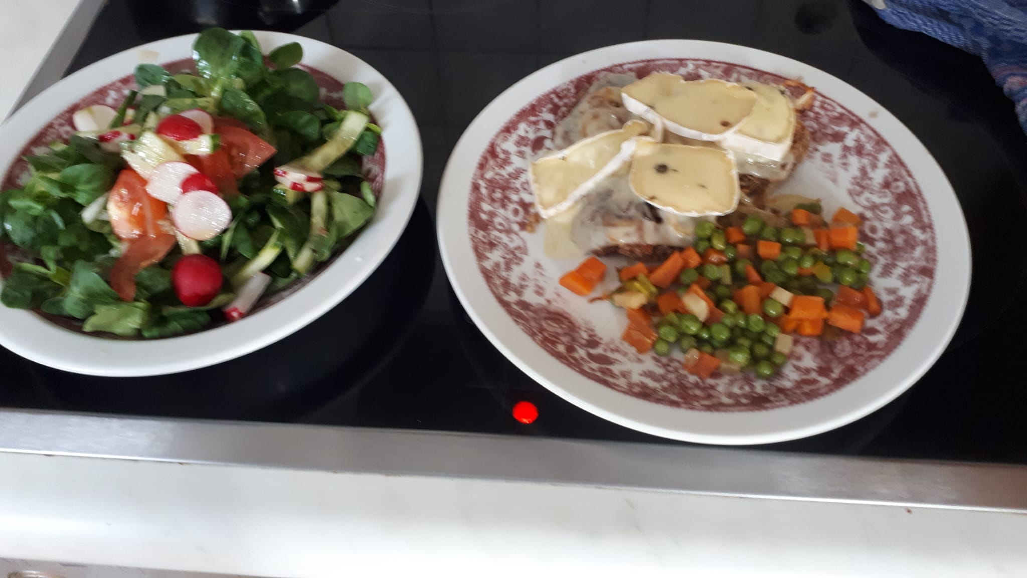 Der hat die Bratlinge auch gemacht und mit Käse überbacken. Sieht dann so aus: