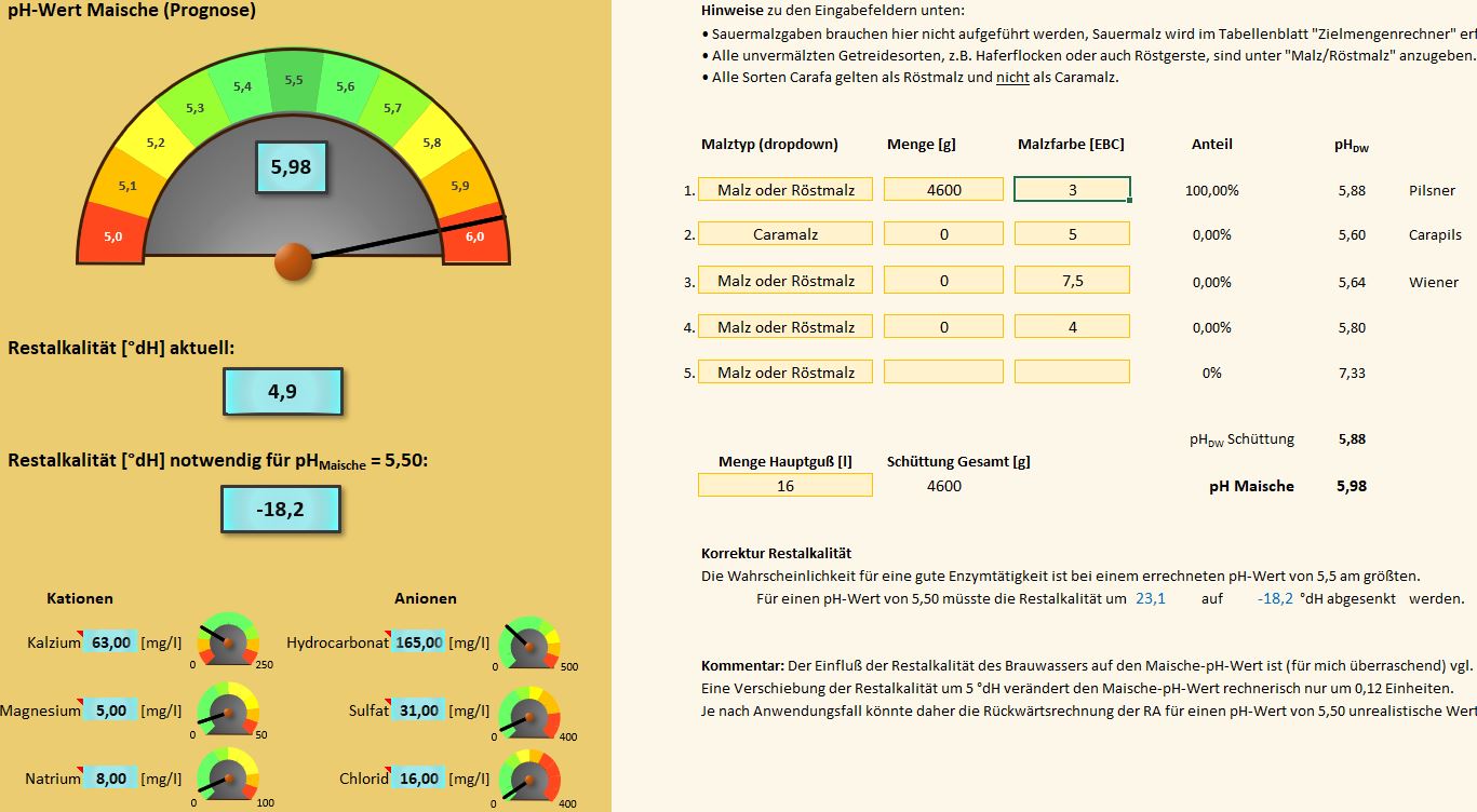 Errechnet mit bekannter Sudhausausbeute und Brewfather