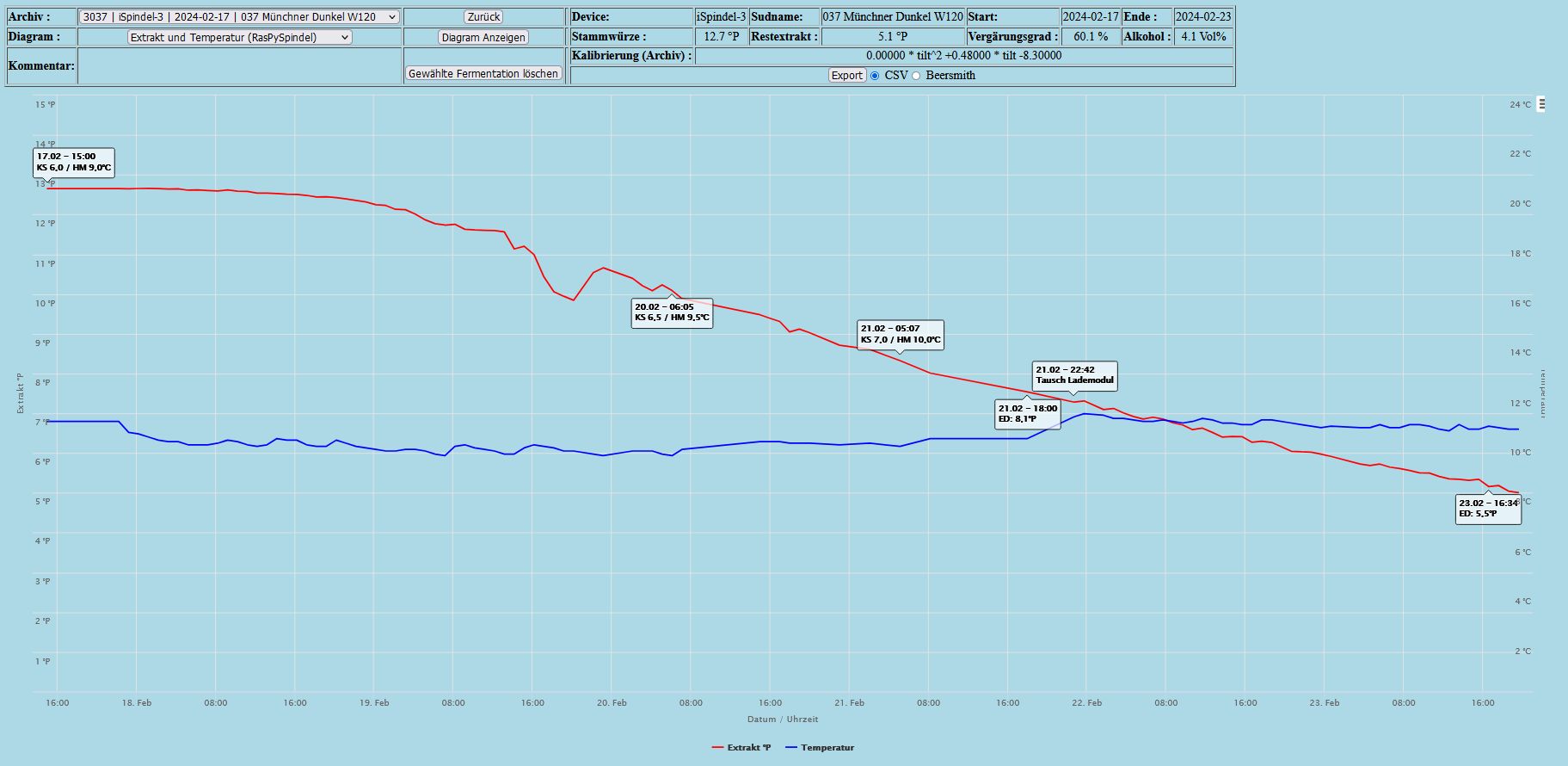 - (+0d 17h) Minimaler Extraktabbau ist über die iSpindel ab So 18.2 8:00 Uhr zu beobachten
