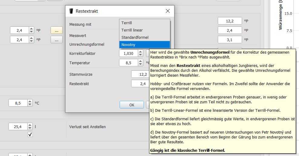Hallo Erwin, Nowotny ist vollkommen neu und bisher sogar in der Formelsammlung undokumentiert. Früher war Terrill als Standardformel im KBH voreingestellt, jetzt die Standardformel. Leider hat es da nie eine Diskussion gegeben, die für mathematisch Unbelastete nachvollziebar wäre. Wenn Du und Oli da etwas beitragen können, das man als Normalanwender versteht, wäre das toll und wir würden es gerne in den KBH aufnehmen.Braufex hat geschrieben: Freitag 15. März 2024, 15:38