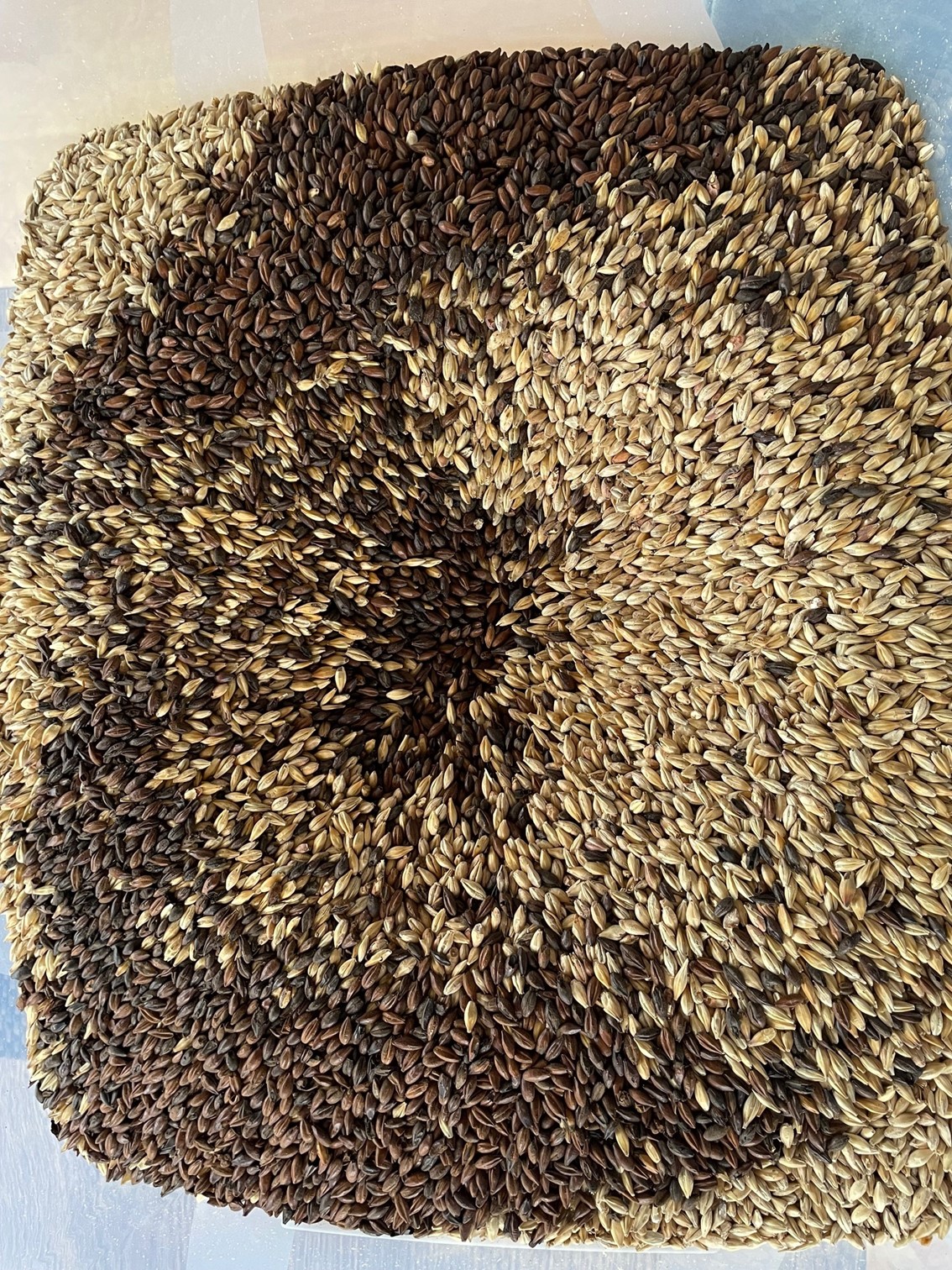 Noch ein paar Details zum Brautrag: mit dem Maris Otter "Keep Flying" von Brouwland bin ich nicht 100%ig zufrieden, da es - zumindest in dieser Charge - viele Fremdkörper enthielt, siehe Bild. Oben links der weiße Klumpen: das ist geschmolzenes Plastik.