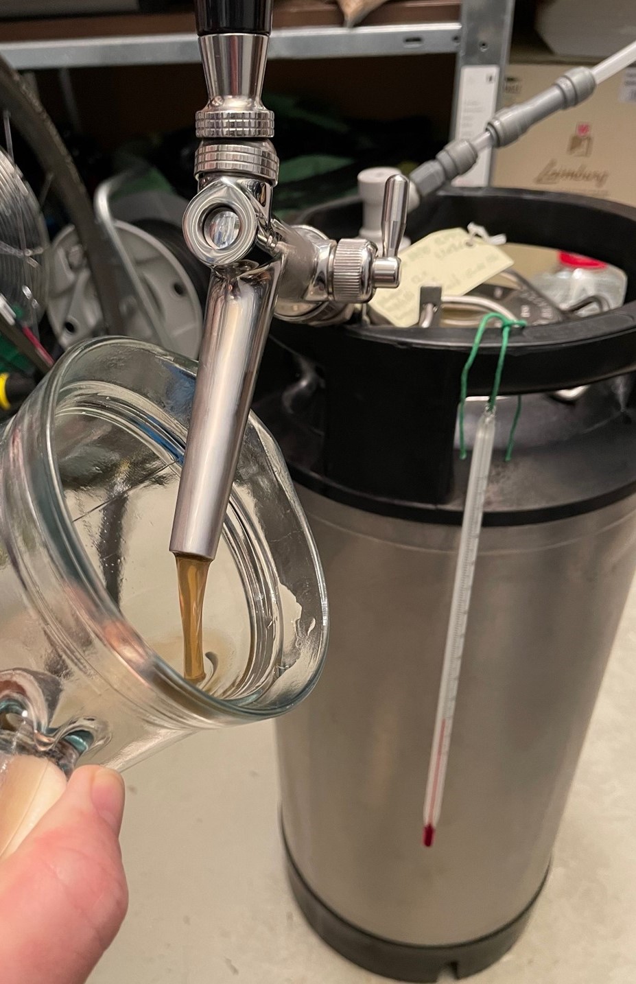 "Fassanstich" meines Split-Batch-Pilsners: Einen Teil mit Huel Melon & Cascade gestopft, den anderen Teil mit Enigma & Cascade.