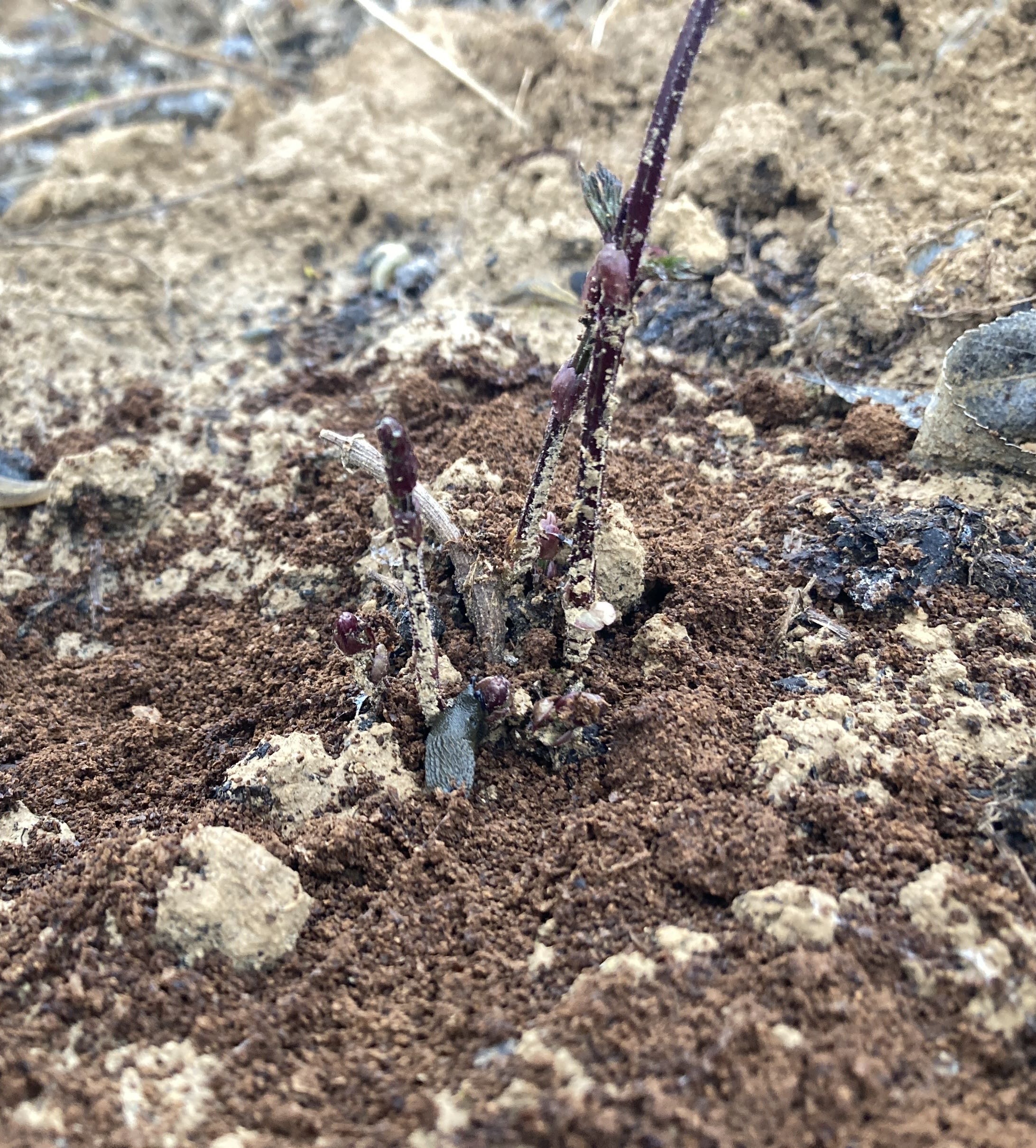 Überall schießen Triebe aus der Erde aber es sollen ja nur 4-6 Triebe zusammen geführt werden.
