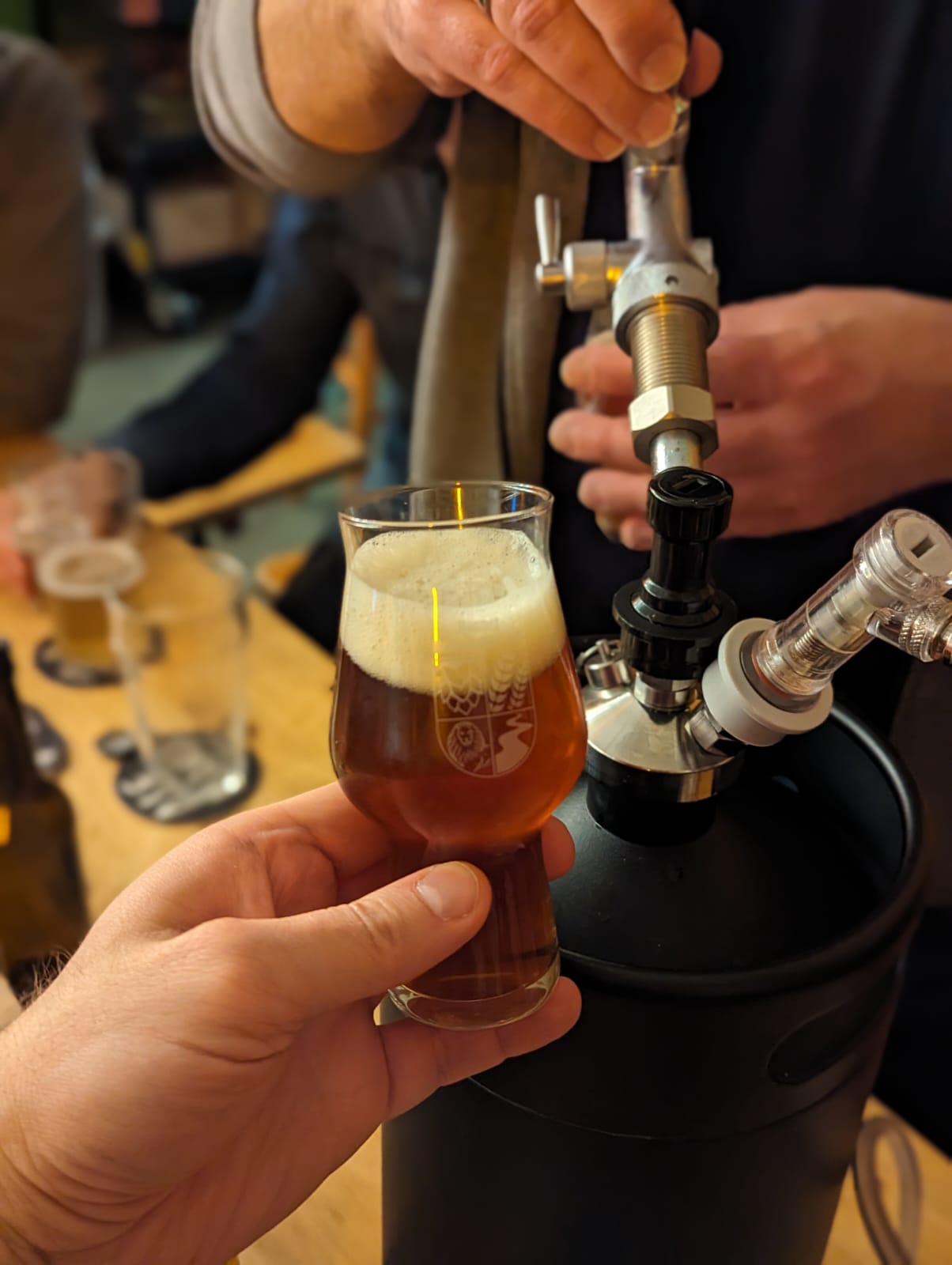 Gestern auf dem Vereinsstammtisch. Mein Wiener Lager. Kam gut an, kann aber noch 4 Wochen reifen.