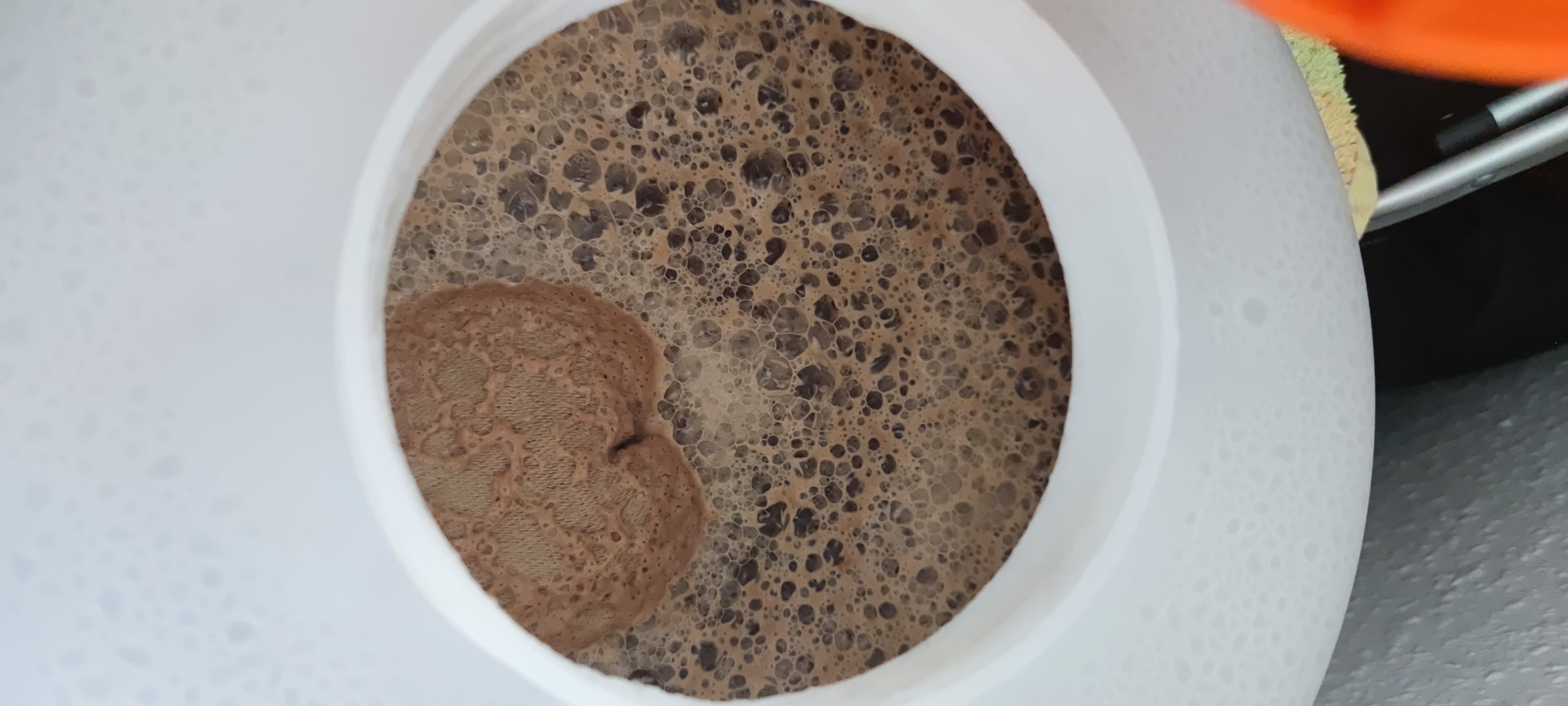 Wenn der nicht sauer schmeckt dann sieht es eher nach CO2 Schaum aus der sich durch das stopfen jetzt an die Oberfläche macht.