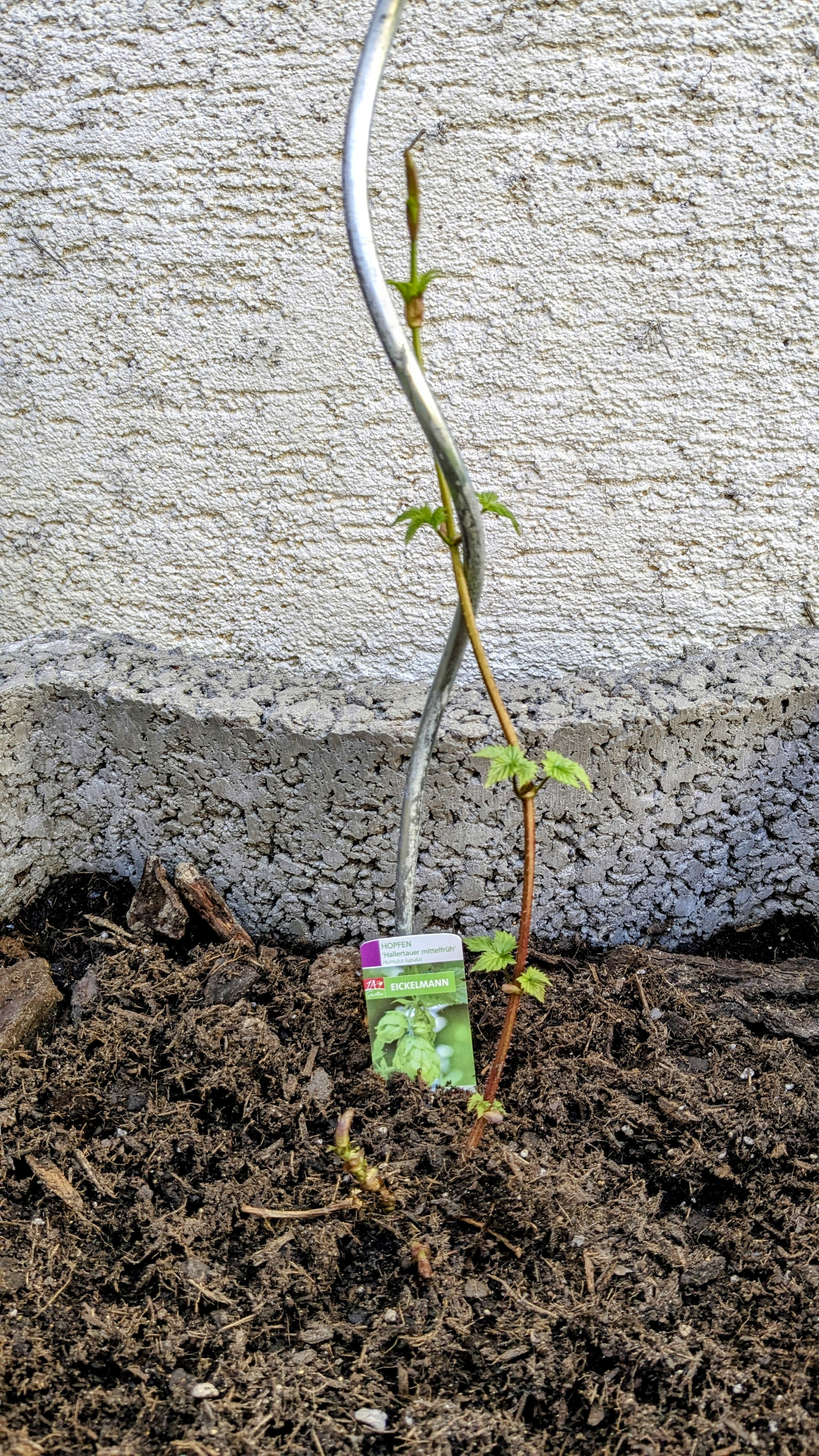 Mein dieses Jahr neu gepflanzter Hallertau Mittelfrüh wächst auch langsam aber sicher.