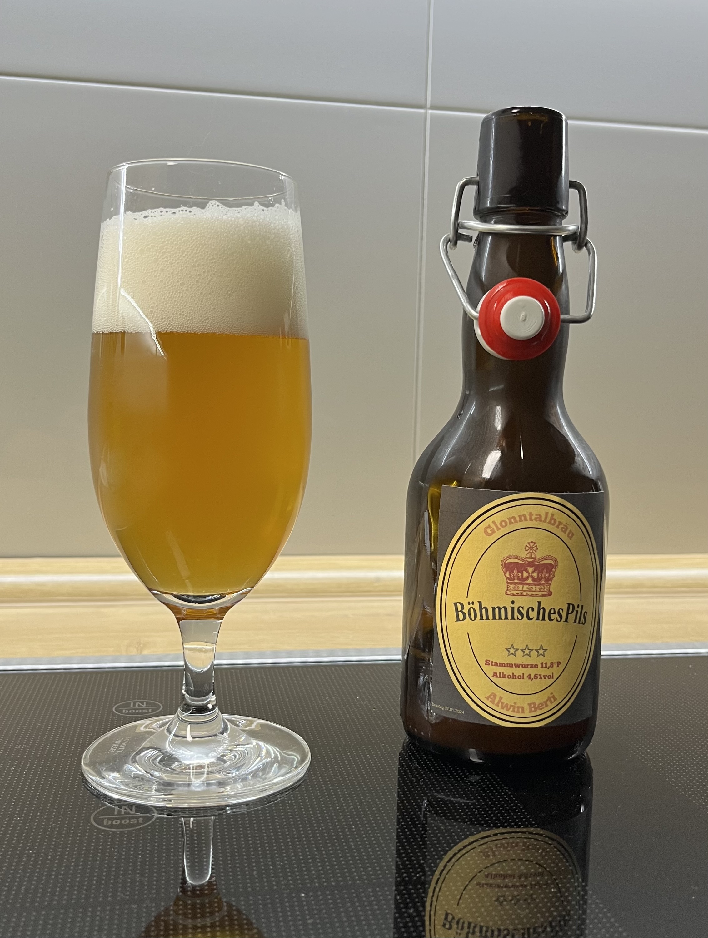 Erste Probe meines Maibock. Tolle Hopfenblume, sehr harmonisch, rund. Vielleicht ein klein wenig bitterer könnte er sein.