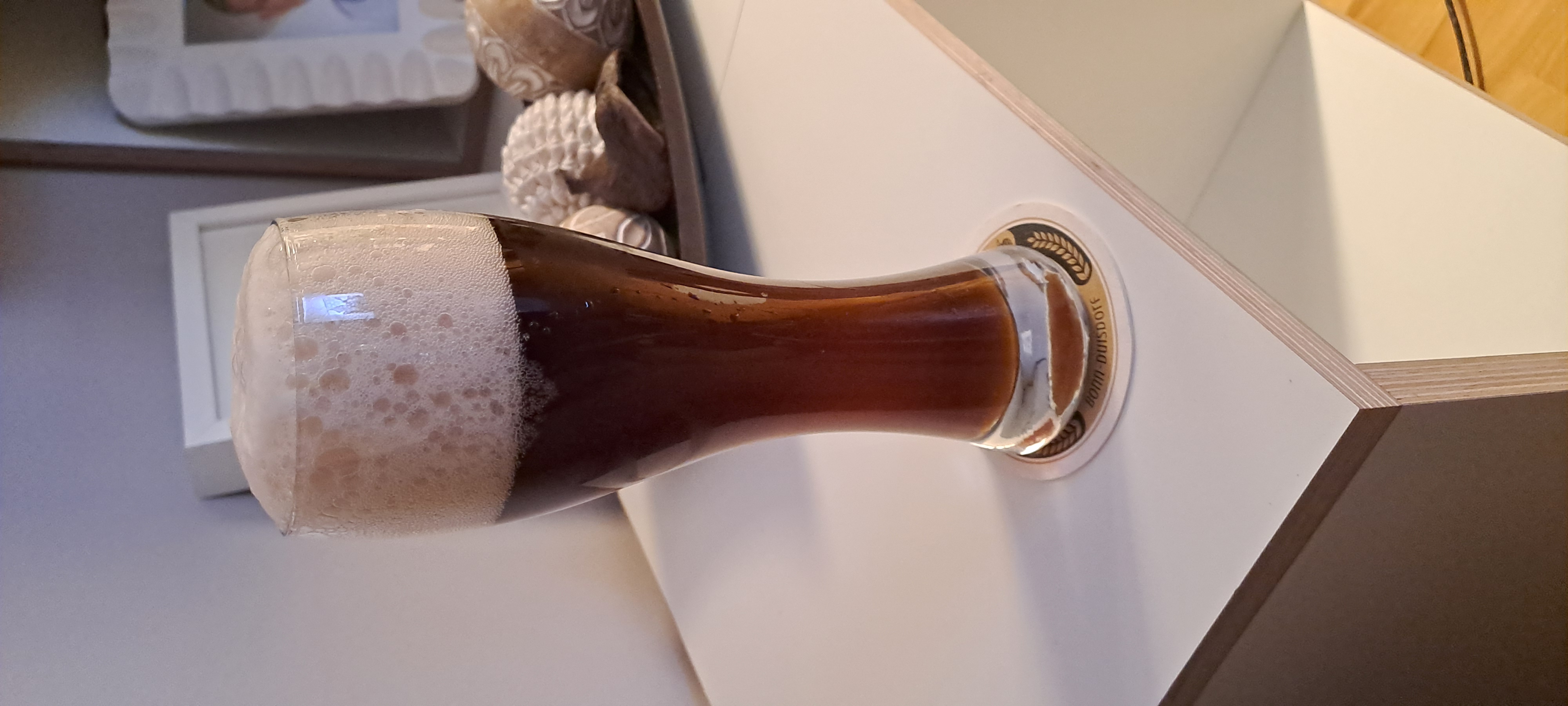 Mein belgisches Dubbel. Wunderbar gereift. Trockenfrüchte mit leichtem Sherry. Hinten raus schmeckt man zum Glück den Alkohol. Denn spüren tut man die gut 8% sehr deutlich. 😝😅