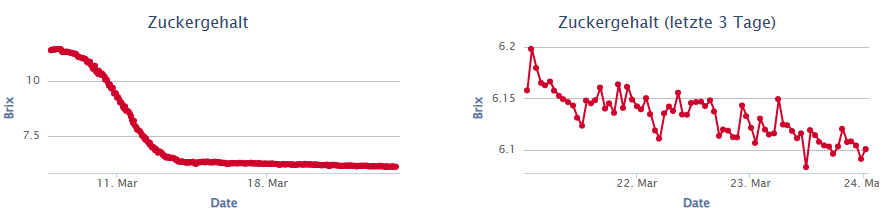 Wenn ich mir den linken Verlauf anschaue, würde ich sagen, die Gärung ist durch und ich kann abfüllen.