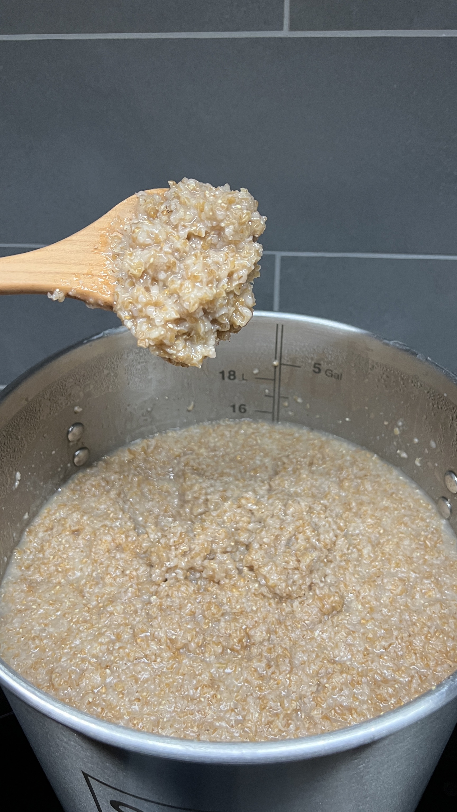 Die Schüttung kann gut variiert werden. Weizen Rohfrucht statt Weizenmalz macht einen schönen Schaum. Wenn wir den Weizen direkt mit eingemaischt haben, ging die SHA runter. Also haben wir ihn vorher in heißem Wasser über Nacht quellen lassen. Dann war die SHA wieder normal
