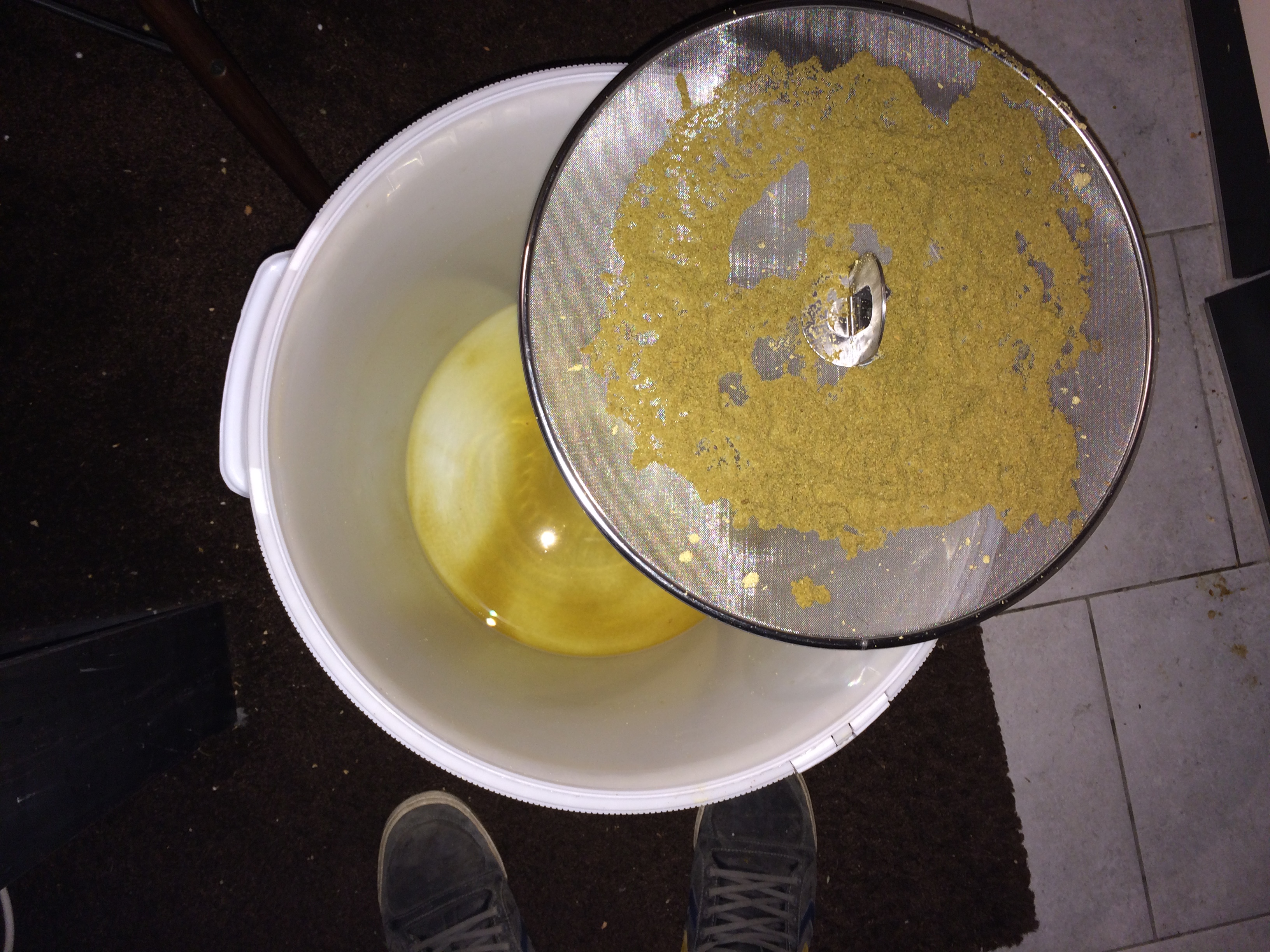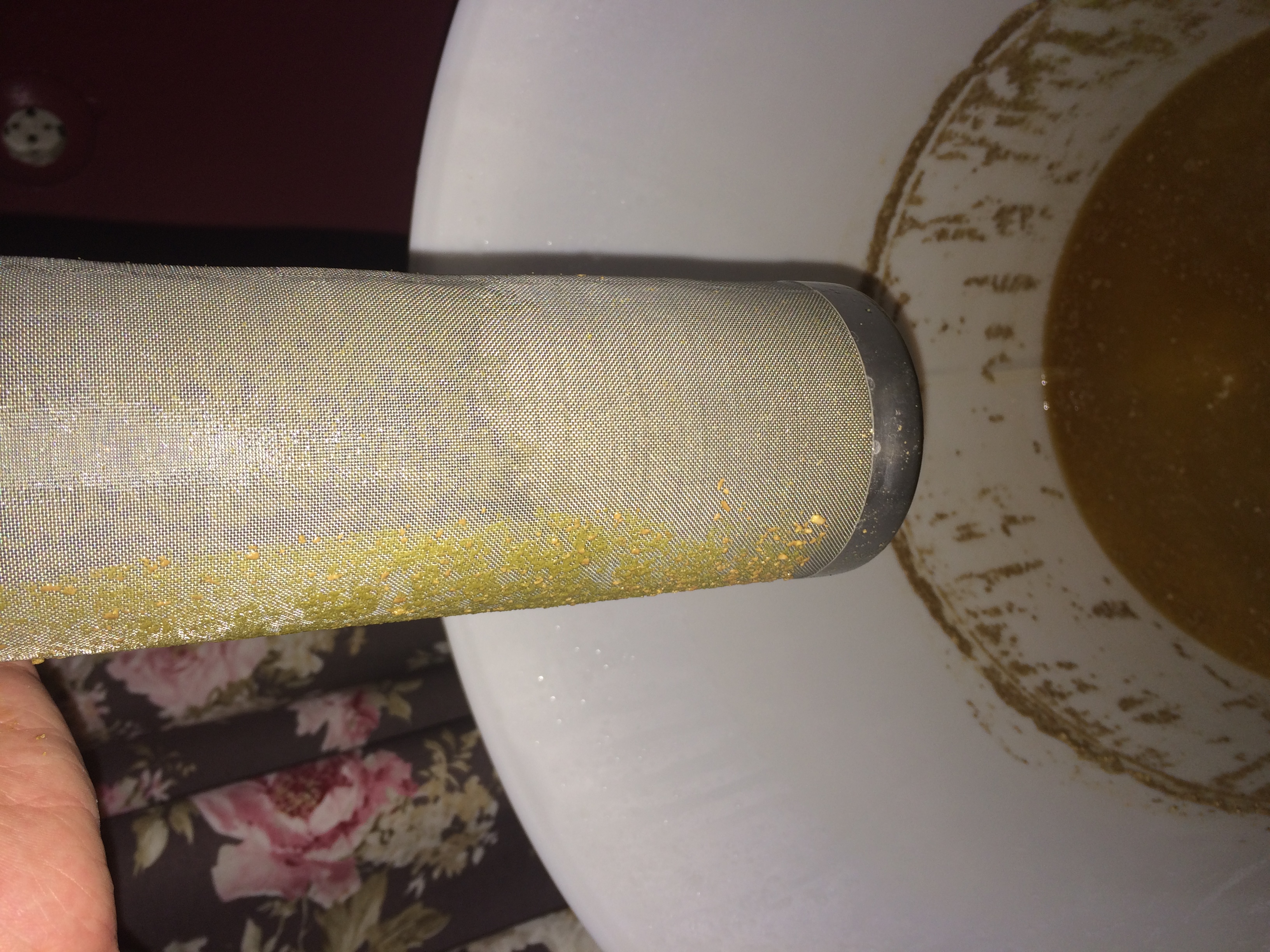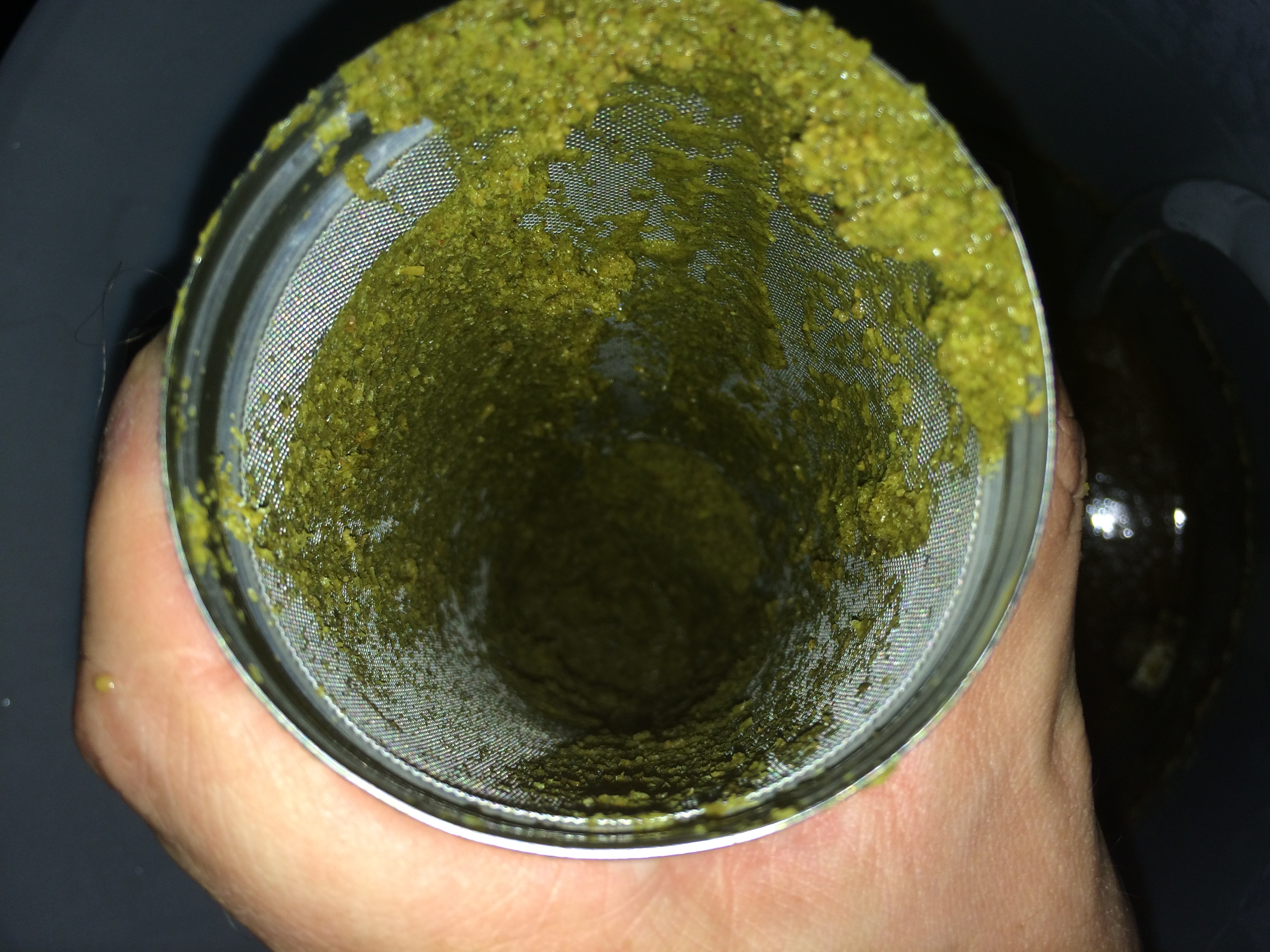 Der China Hopfenfilter ist eingetroffen und die erste Dry-Hoppig Session mit Pellets ist gelaufen. Wie ihr an den Bildern im Anhang seht, sind die 300 micron zu weit für die feinen Hopfenpartikel aus den Pellets. Für Dolden sollte es aber prima funktionieren.