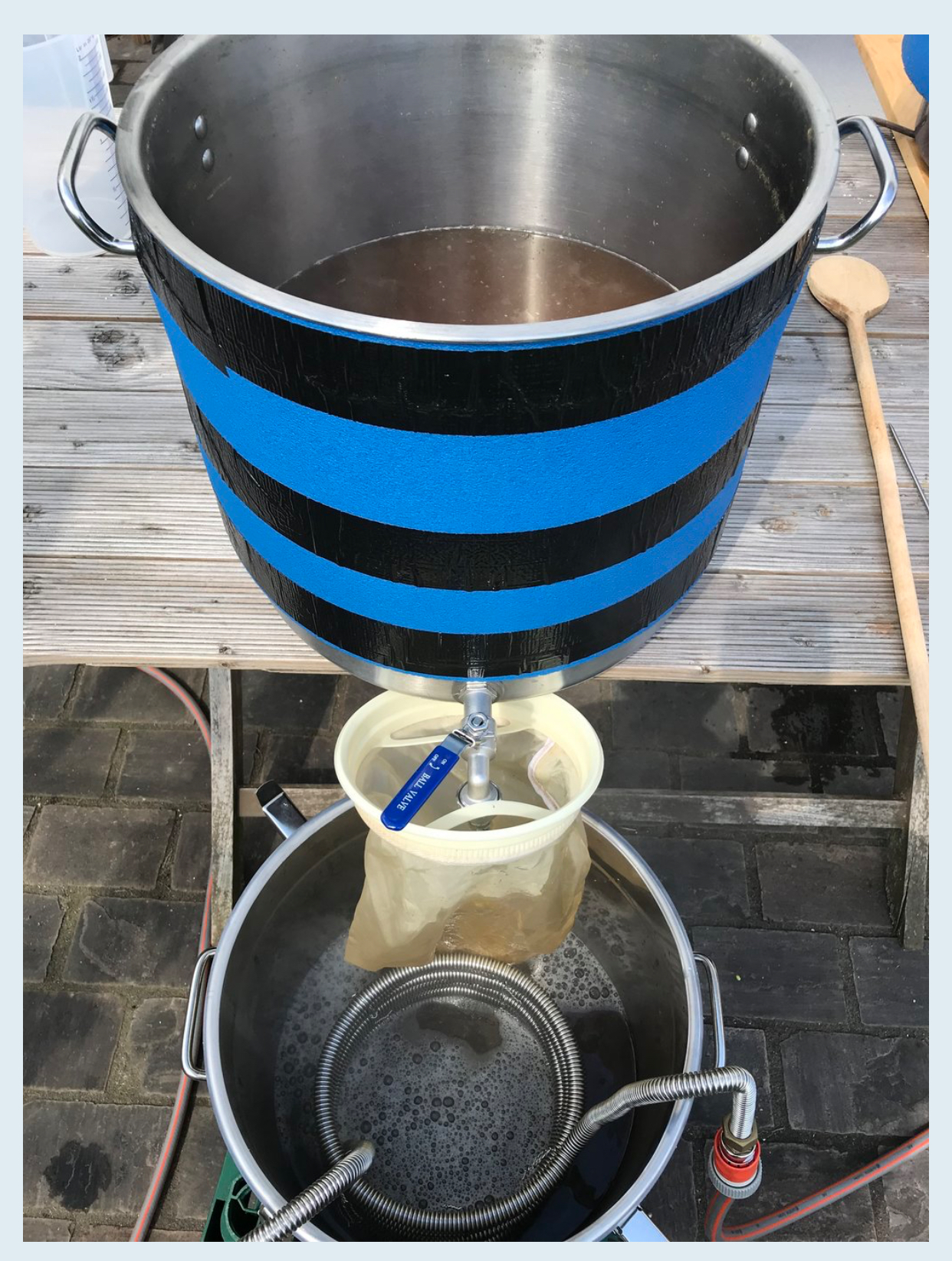 Geläutert dann entspannt über den TC Läutergrant (Crafthardware) mit direkt unten angebrachter 12V Läuterpumpe und direkt hochgepumpt in die Pfanne.