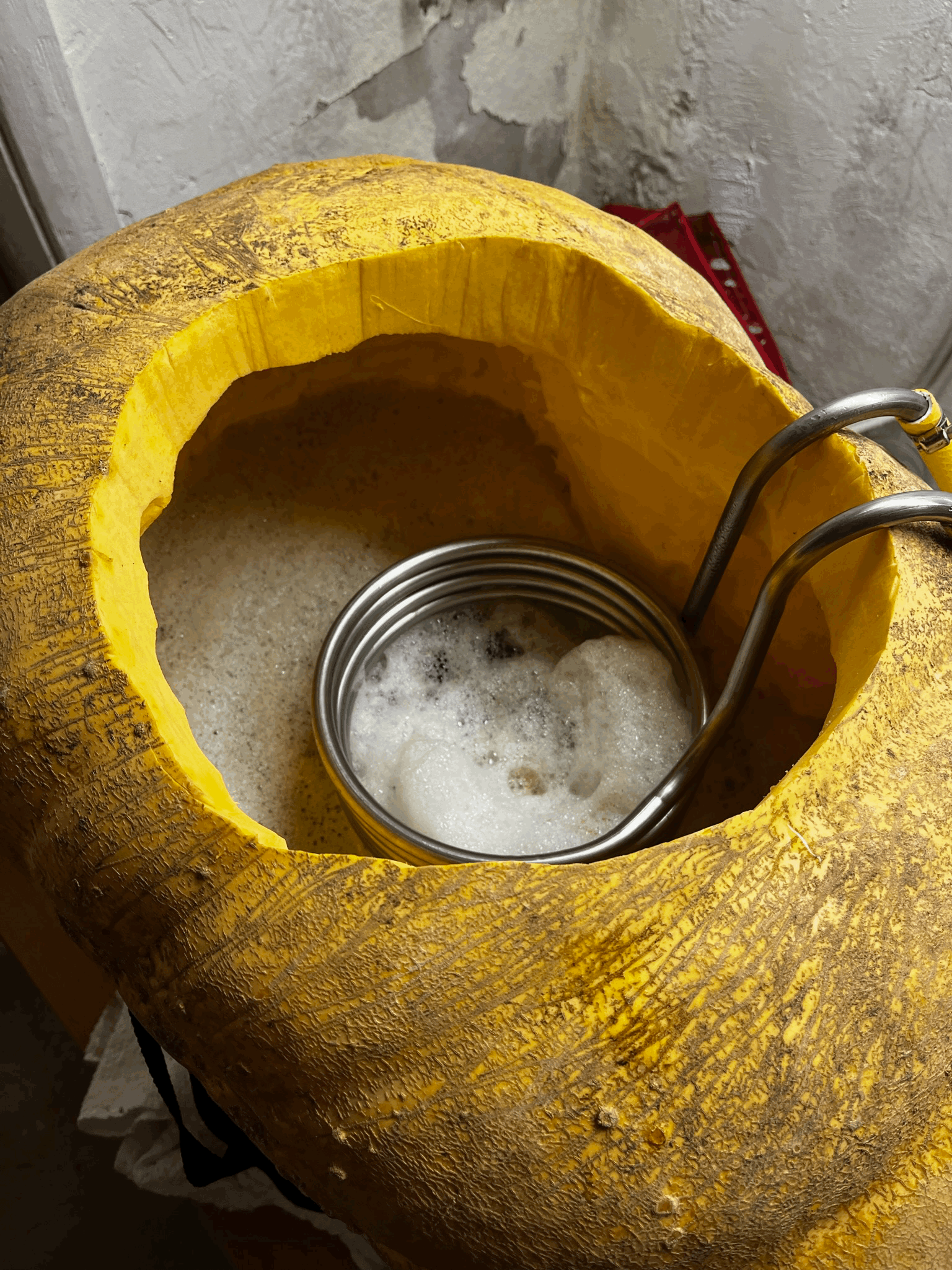 Eigentlich bin ich Hobbygärtner. Bevor mein Hopfen aber genug abgeworfen hat, hat mein Kumpel sein Craftbeerbusiness schon an den Nagel gehängt. Musste ich selbst brauen. Jetzt wollte meine Frau einen Riesenkürbis zum Bootfahren haben, aber der ist zu klein geblieben. Aber für Kürbisbier war er genau richtig. Hier die ganze Bildergeschichte: