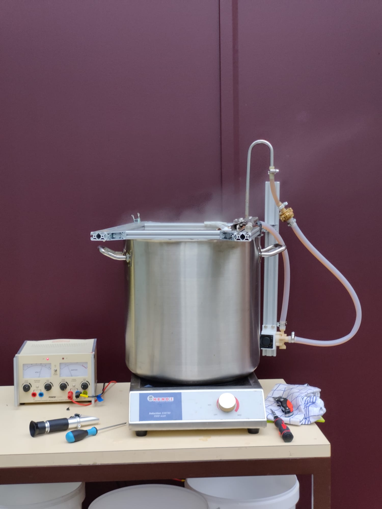 Wir sind vier Studenten der HAW-Hamburg und haben im Rahmen unseres Bachelorprojektes eine Heimbrauanlage mit Malzrohr und Umwälzpumpe entworfen, gebaut und auch das erste Bier gebraut. Hier und in dem unten Angegebenen Git-Hub erzählen wir von unseren Erfahrungen, die wir auf dem Weg gemacht haben und stellen auch eine „Anleitung“ zum Nachbauen zur Verfügung.