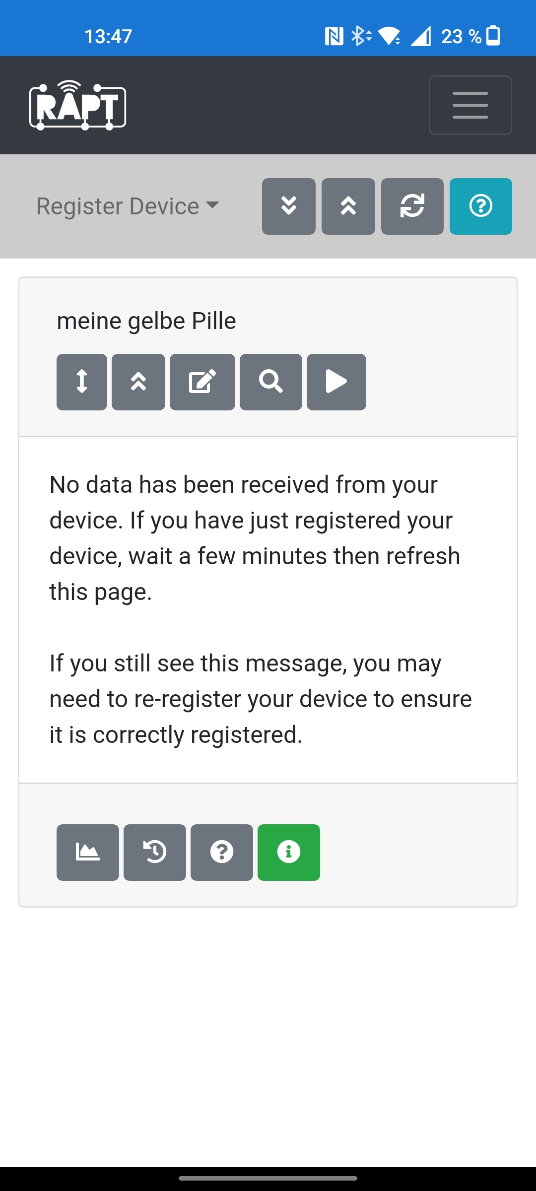 Nun bekomme ich im Rapt Portal immer diese Meldung und die Pille sendet auch keine Daten