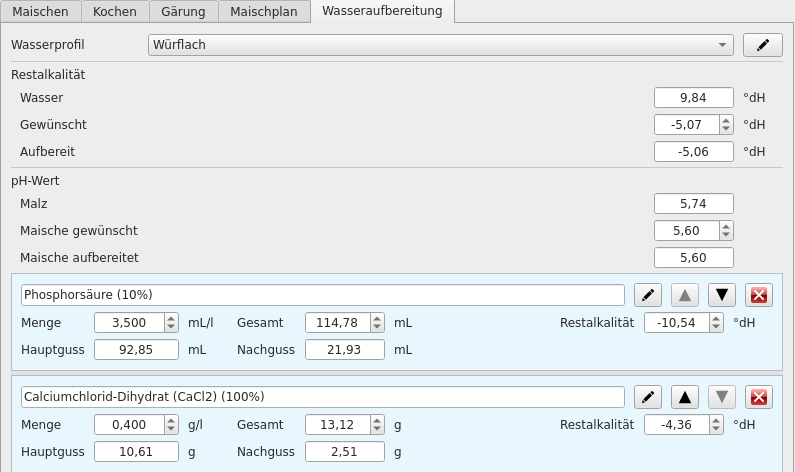 integrator hat geschrieben: Sonntag 19. Mai 2024, 14:59 Wasserwerte und Malz hast du soweit korrekt eingegeben und welche Konzentration nutzt du bei der Phosphorsäure?