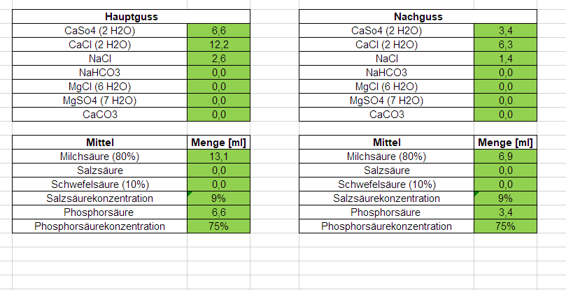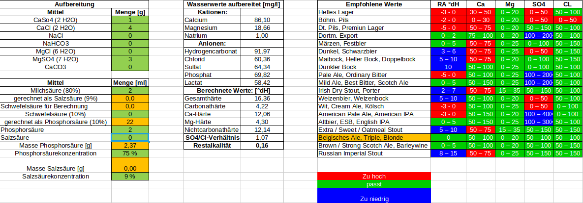 Das dachte ich mir schon dass das ein Wert für weitere Berechnungen sein wird aber ich wollte das erwähnen denn ich als Anfänger wäre fast drüber gestolpert. Danke für die tolle Arbeit! Bevor Integrator das Tool erwähnt hat, war ich knapp davor das Thema Wasseraufbereitung auf "irgendwann später" zu verschieben weil das für mich undurchsichtiger war als mein selbstgebrautes Baltisches Porter hier am Tisch.
