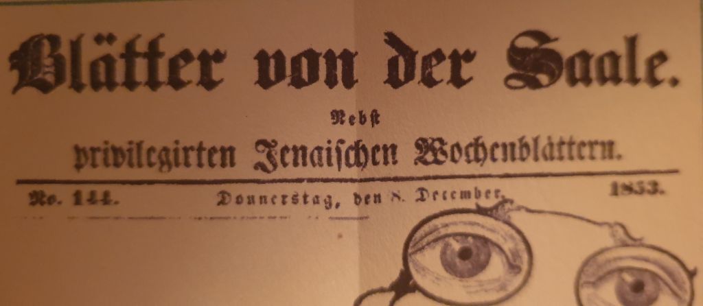 Am 8. Dezember 1853 findet sich in den "Blättern von der Saale" die folgende Anzeige des Pächters vom immernoch in Jena existierenden Haus zur Rosen.