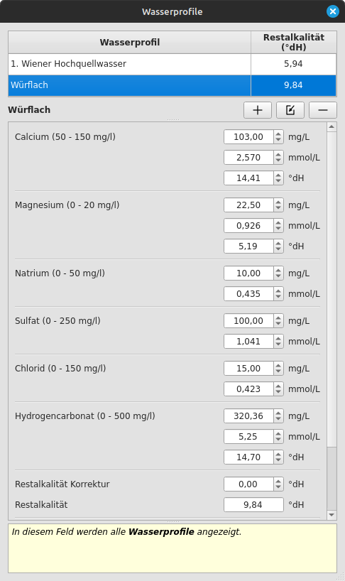 Das eigene Wasser ist recht hart, das Wiener Wasser etwas weicher. Ich lege die Profile aus dem KBH2 auch hier bei.