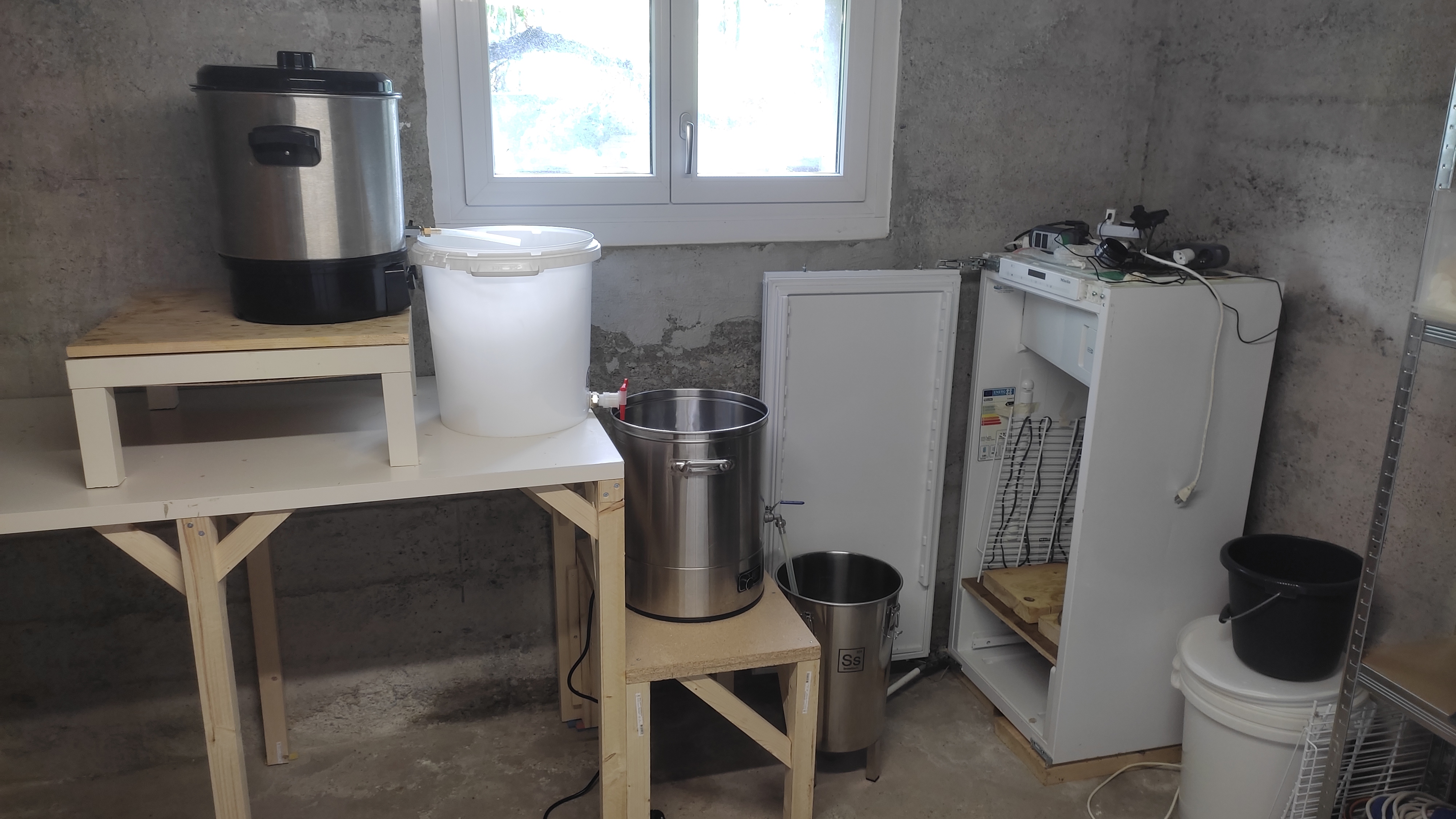 • Ergonomie, der Maischebottich ist Oberkante ca. 1m über Boden, das ist eine viel angenehmere Höhe zum Rühren/Messen /Umschöpfen etc. als wenn der Bottich auf einem Tisch steht. Auch der Läuterbottich ist jetzt weiter unten und ich kann ohne Hocker oben rein sehen.