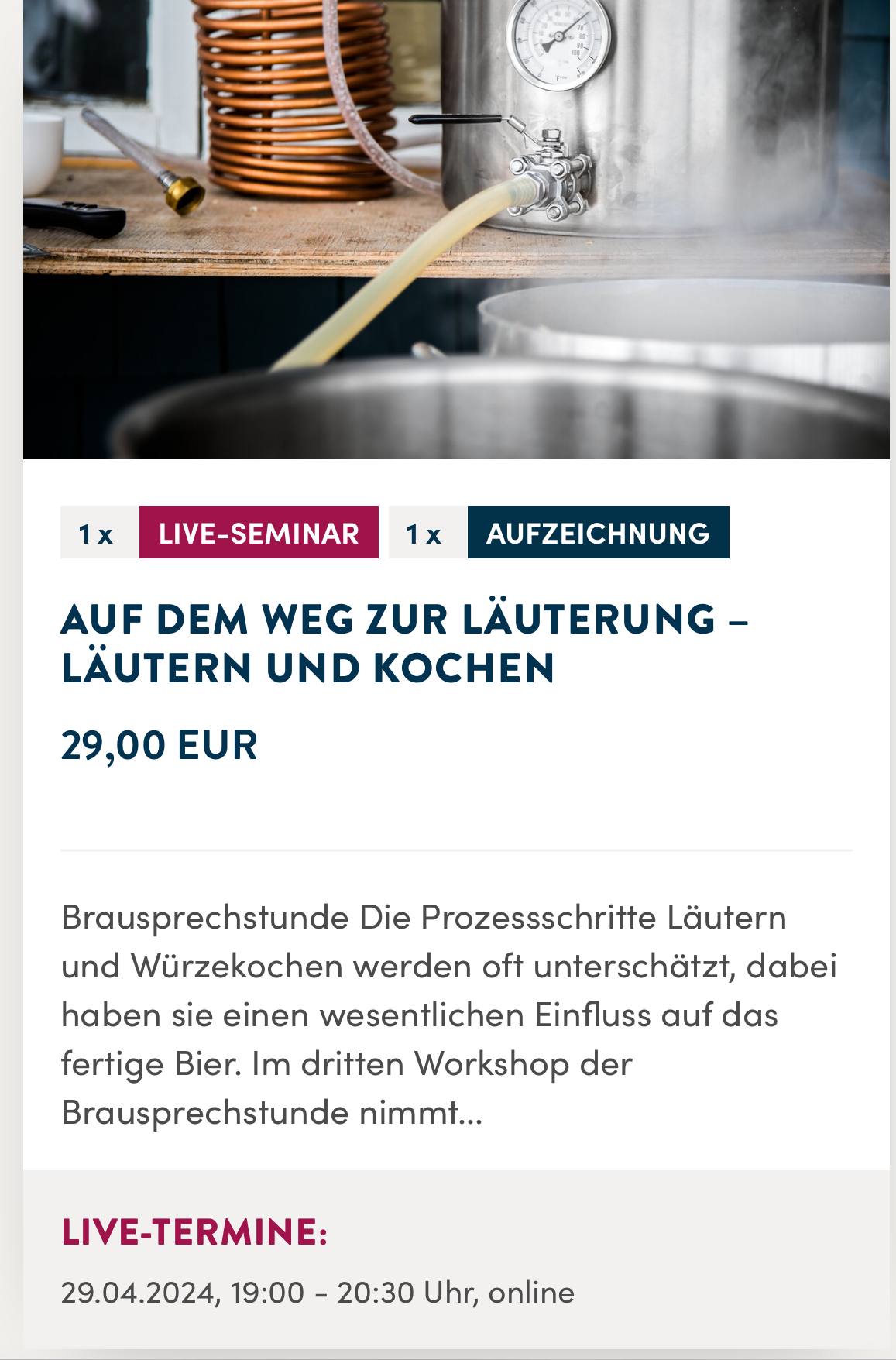 Ich würde mal so sagen, der fortgeschrittene Anfänger wird dem Seminar problemlos folgen können. Ich fange nicht bei Adam und Eva an, man sollte also am besten schon mal gebraut haben. Ich versuche, wie ja in meinen Büchern auch zum einen an der Praxis zu bleiben, aber zum anderen auch die Hintergründe zu erklären.