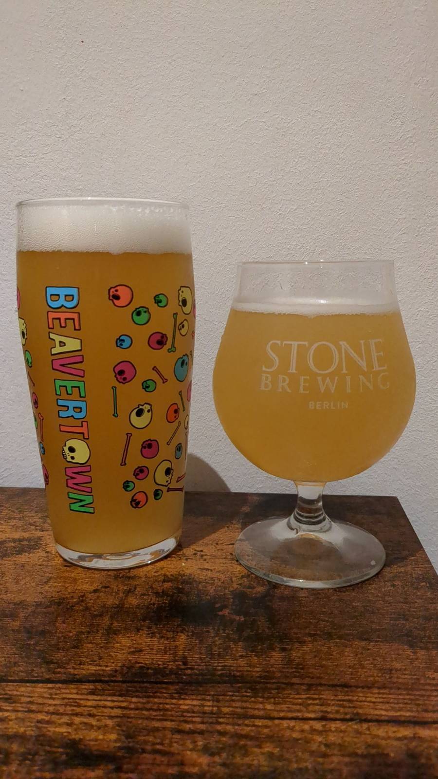 Der Sieger ist eindeutig links, auch der Schaum is aus irgendeinem grund um mehrere Potenzen besser und feiner. Kräftiges Zitrusaroma, harmoniert super mit dem Hopfen, schmeckt wie Desperados ohne Aroma. Wenn es nicht knapp 7% hätte, wäre das ein super Sommerbier. Wird nochmal gebraut.