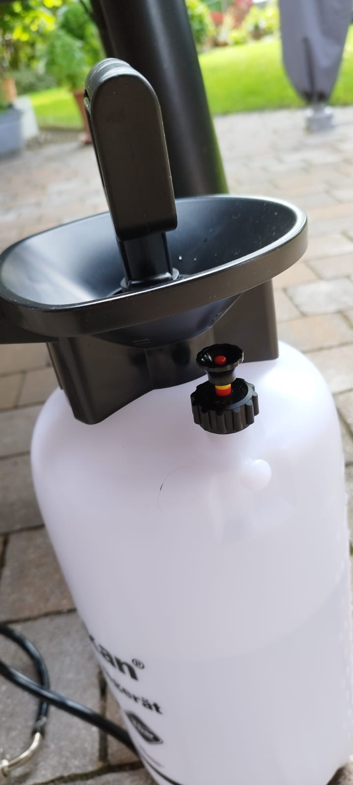 Jetzt habe ich eine Lösung gefunden... In der Bucht bot jemand einen umgebauten Drucksprüher an.. auch für Verhältnismäßig viel Geld...ca 60 Euro, allerdings noch mit diversen Bürsten und Reinigungsmittel. Aber die Idee fand ich gut.