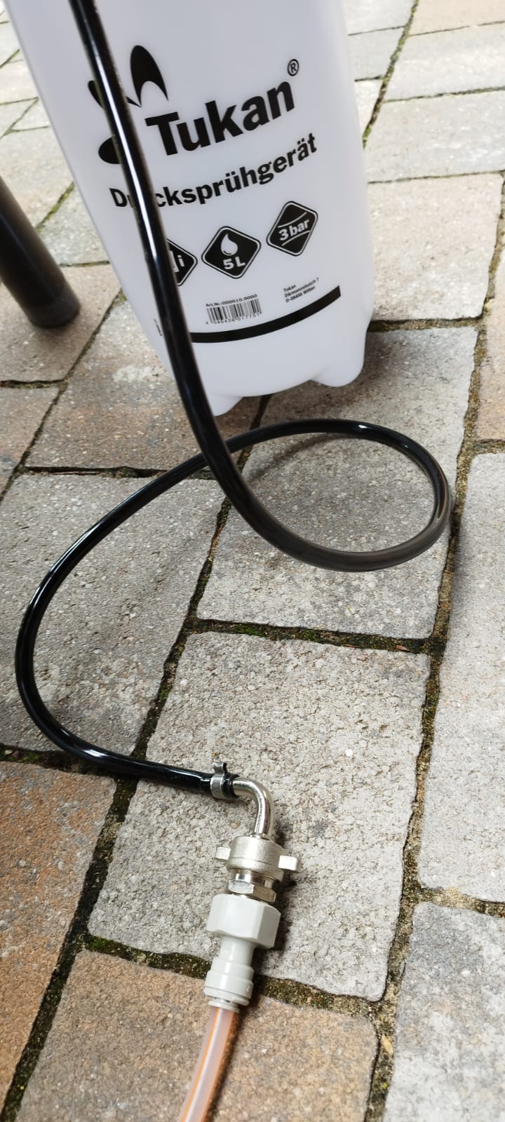 Schlaucharmatur und Einohrschellen hatte ich noch - den Drucksprüher habe ich bei einem großen online Shop A... Für ca 16 Euro frei Haus erworben. Bevi Alkalisch und danach Sauer habe ich auch im Haus...