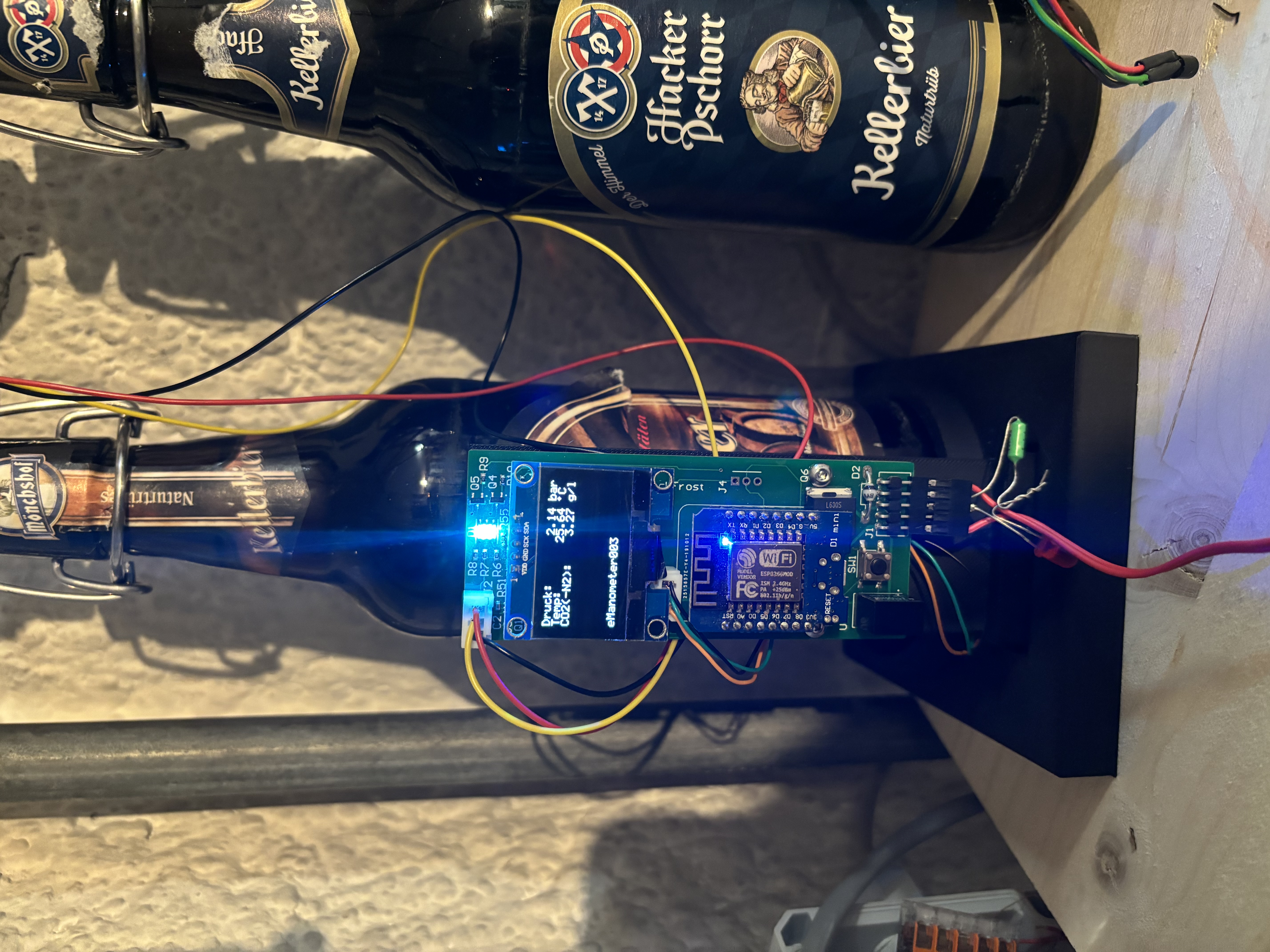 Der DS18B20 ist im Boden mit einem aus TPU gedruckten Halter integriert, damit er sich gegen den Flaschenboden drückt.