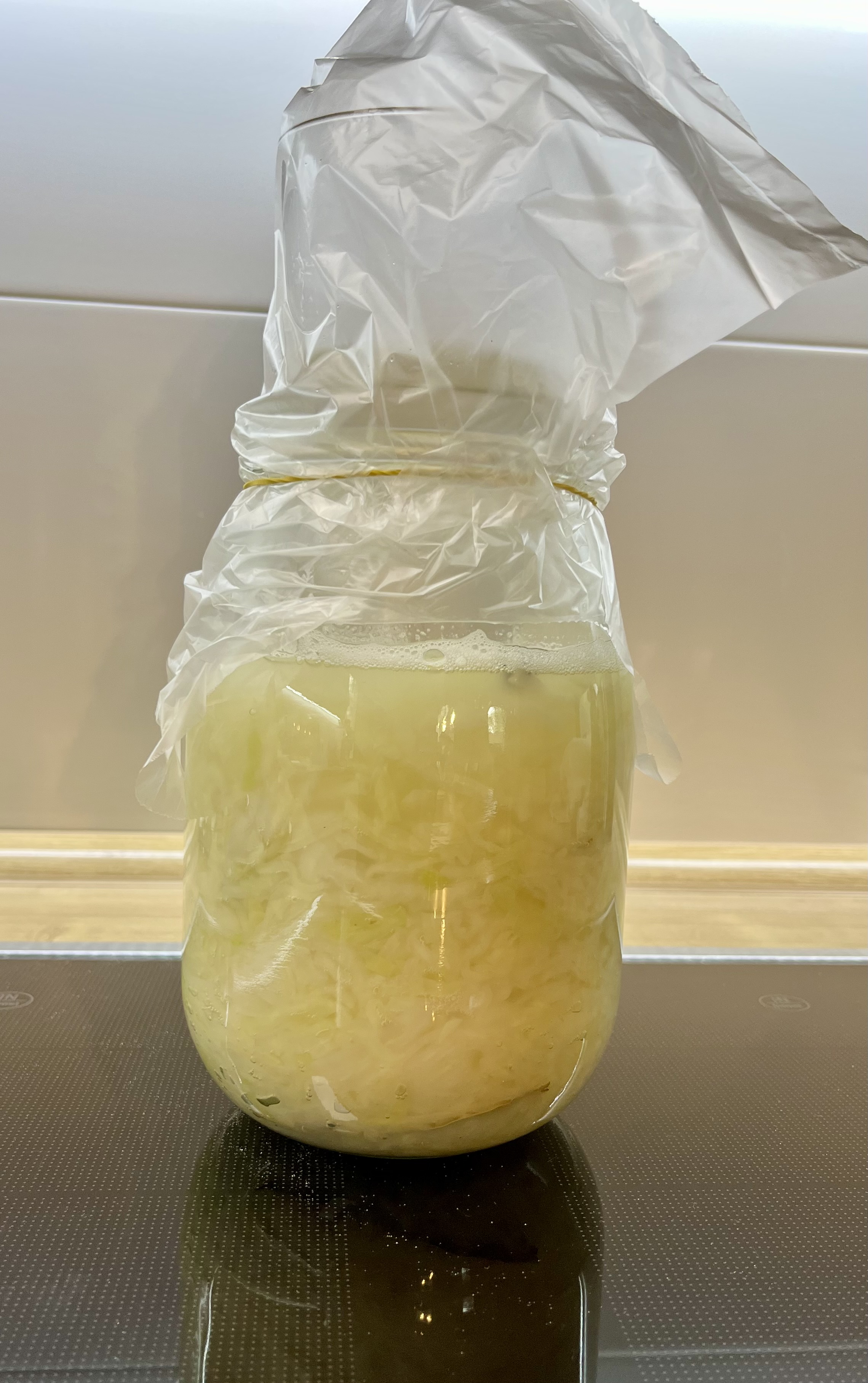 Rd. 12h nach Anstellen bereits Niedrigkräusen, kräftiges Blubbern im blow-off und laut Tilt bereits einiges an Extrakt weggeknuspert. So kann es weitergehen.