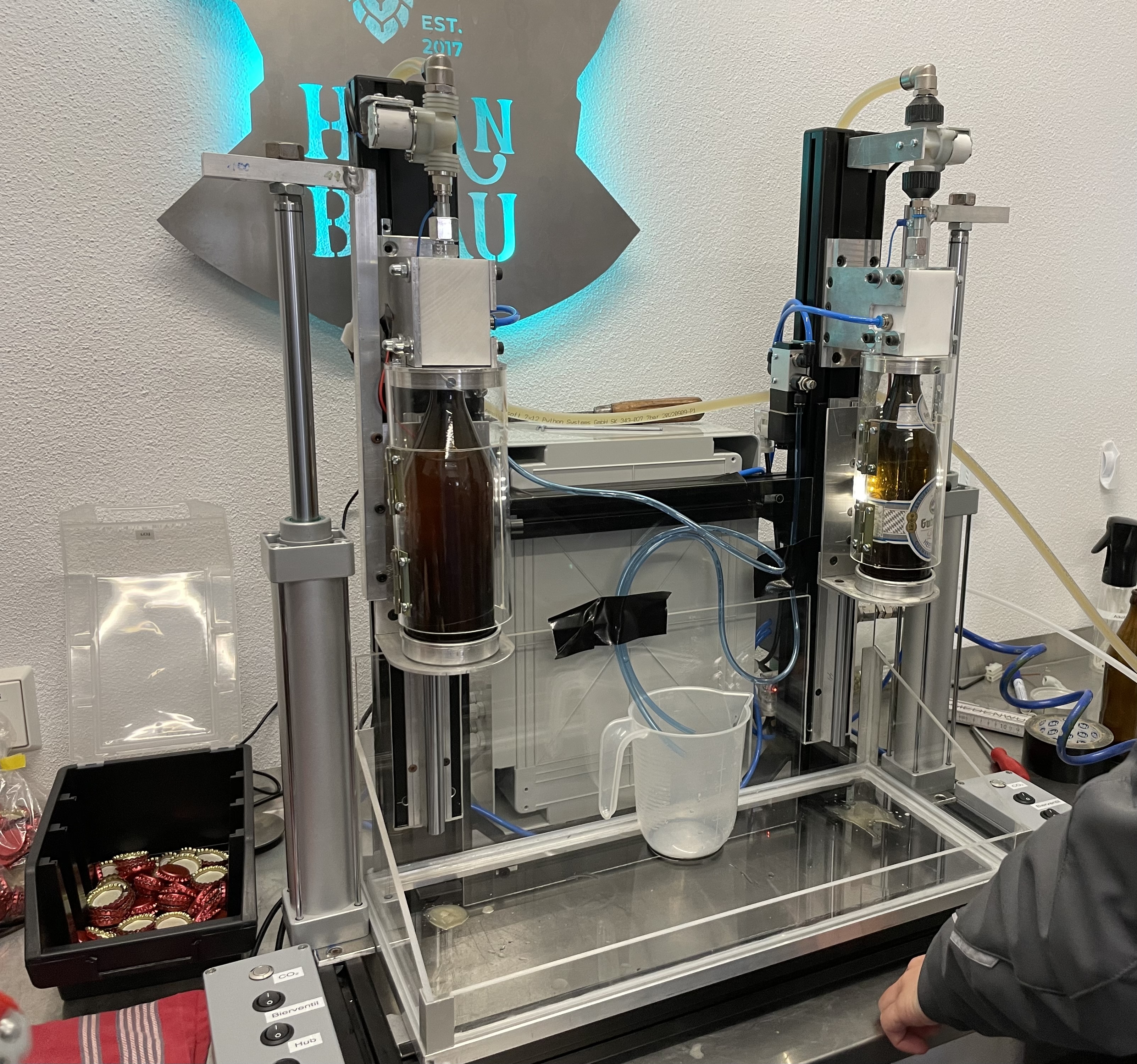 Aber 40 Flaschen abfüllen per Hand war anstrengend, also brauchten wir eine Lösung für einen GDA-Ständer.