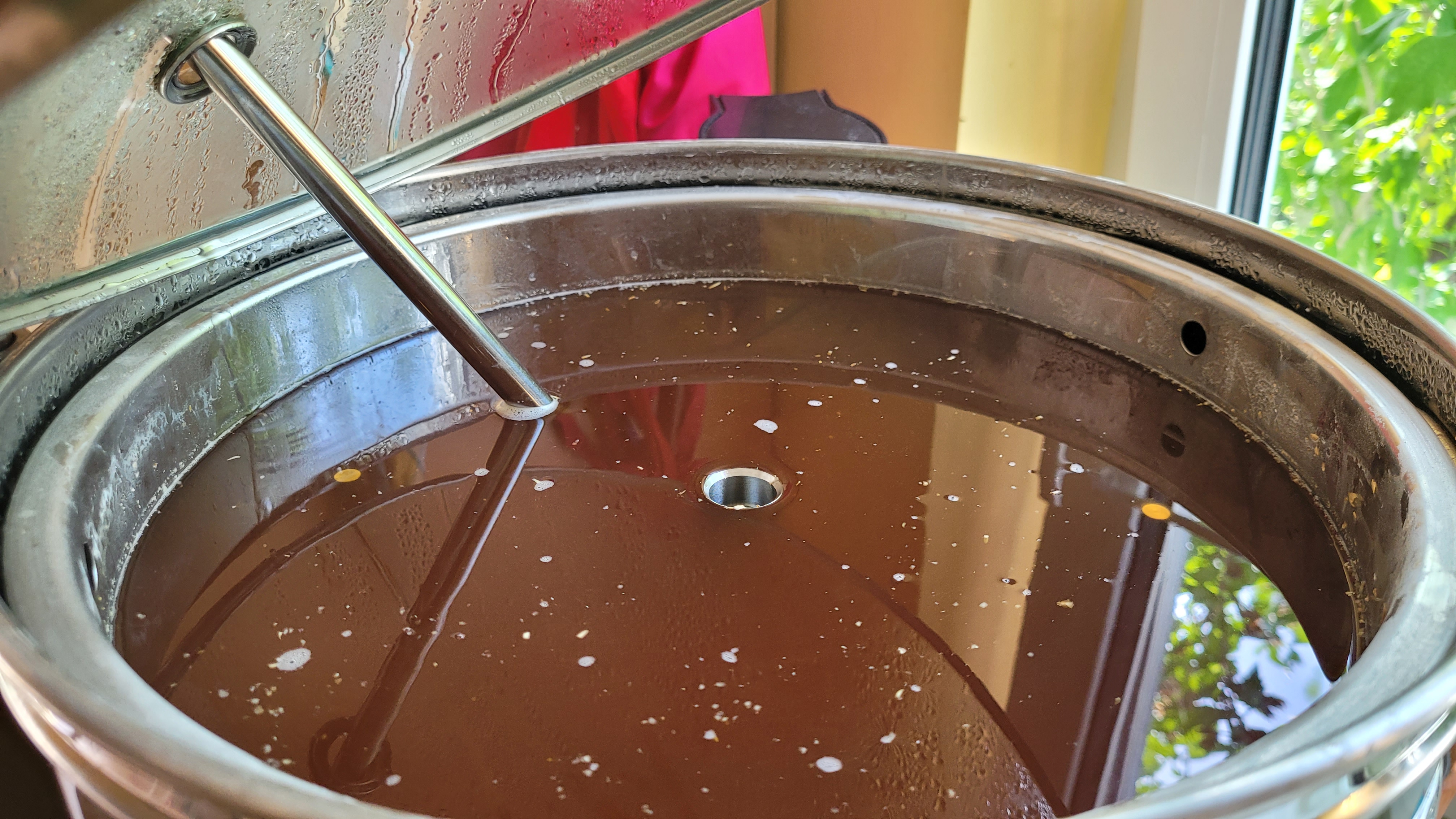 Noch maischt es... heute abend sollte das malzig sommerliche Landbier auf der Hefe liegen.