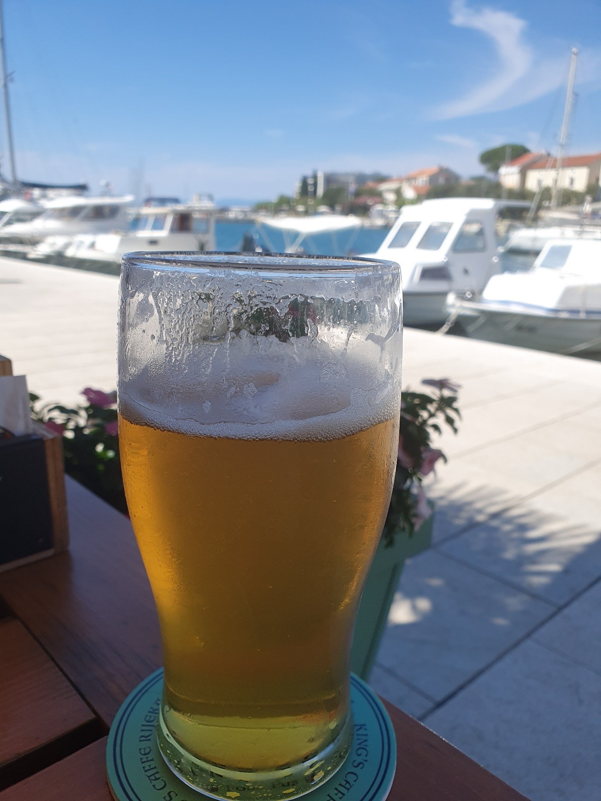 Ein Session IPA der King's Brewery aus Rijeka, in einem von deren mehreren Pubs auf Krk in Kroatien, hier in Malinska am Hafen.
