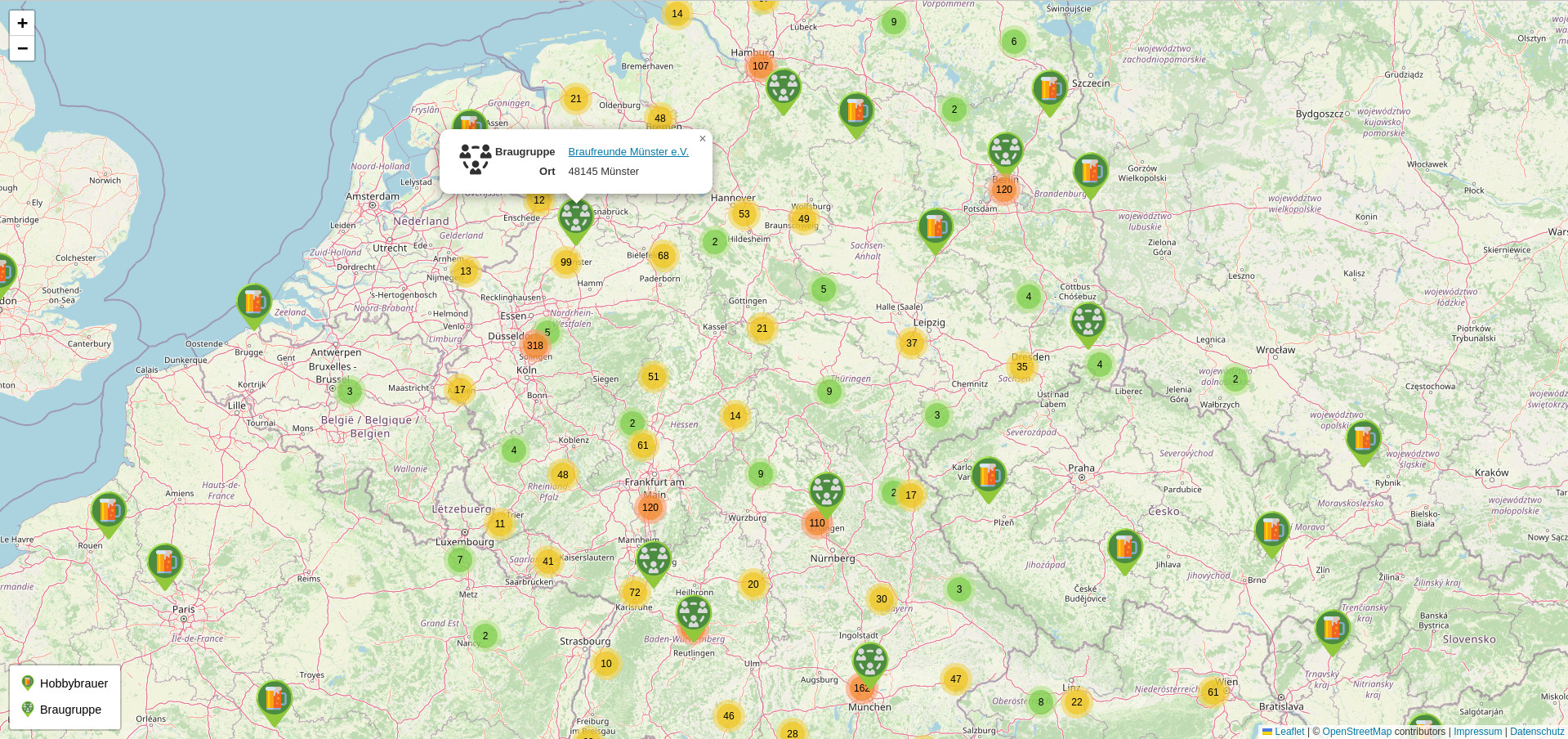 In der ursprünglichen Hobbybrauer-Map von dieck musste sich jeder User selber mit gewünschtem Namen und Koordinaten eintragen.FlorianTH hat geschrieben: Sonntag 25. August 2024, 22:04 Die Marker-Flut ist etwas eingedämmt. Falls noch jemand Anregungen oder Wünsche hat, dann jetzt! In ein paar Tagen soll es dann online gehen.