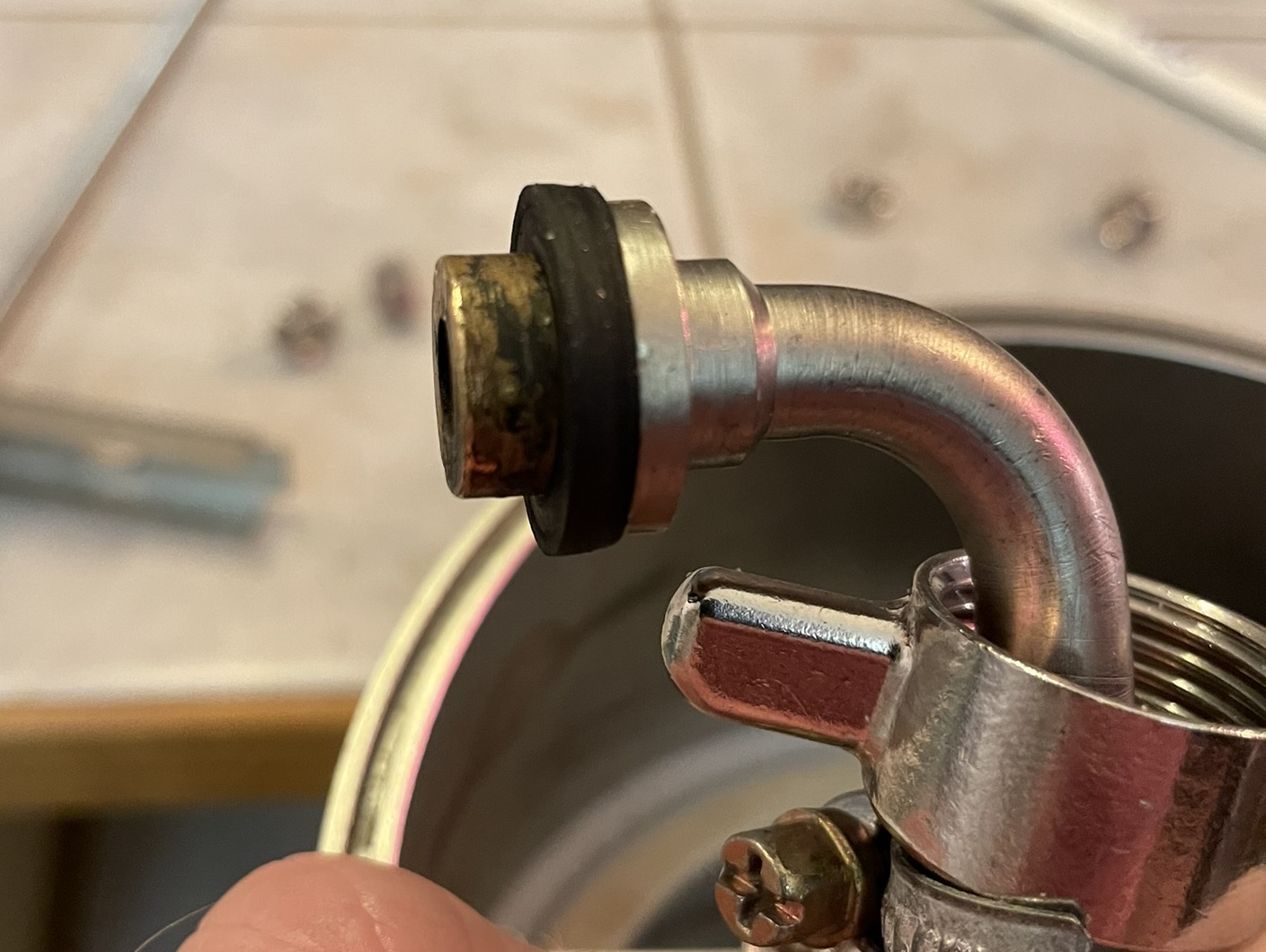 Der Sitz vom Schlauchbogen ist länger als der Absatz im Schankhahnstutzen. Probier Mal eine zweite Dichtung unterzulegen .