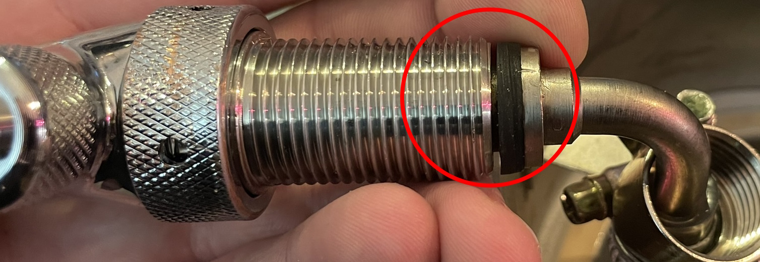 Kurios: Auf der einen Seite ist alles perfekt dicht und passt gut zusammen, auf der anderen Seite gibt es einen deutlichen Abstand zwischen dem Übergang vom Kompensatorhahn zum Bogen. Dadurch tropft es natürlich extrem, egal wie fest ich die Flügelmutter ziehe.