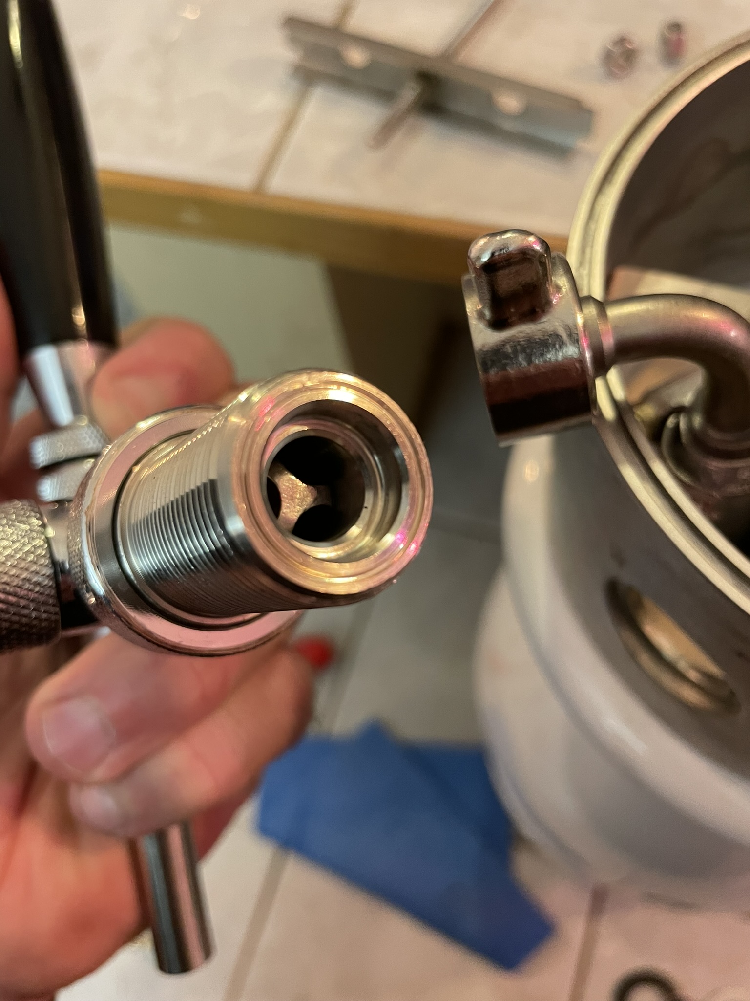 ich habe eine zweileitige Schanksäule gebraucht gekauft und habe mich aufgrund des Grades der Verschmutzung dazu entschlossen, alle Schläuche zu tauschen und die vorhandenen Zapfhähne durch Kompensatorhähne zu ersetzen. Die vorhandenen "Bogenverbindungen" (verzeiht mir, ich habe keine Ahnung, wie die heißen) habe ich beibehalten, gereinigt & desinfiziert sowie die Dichtung ersetzt.