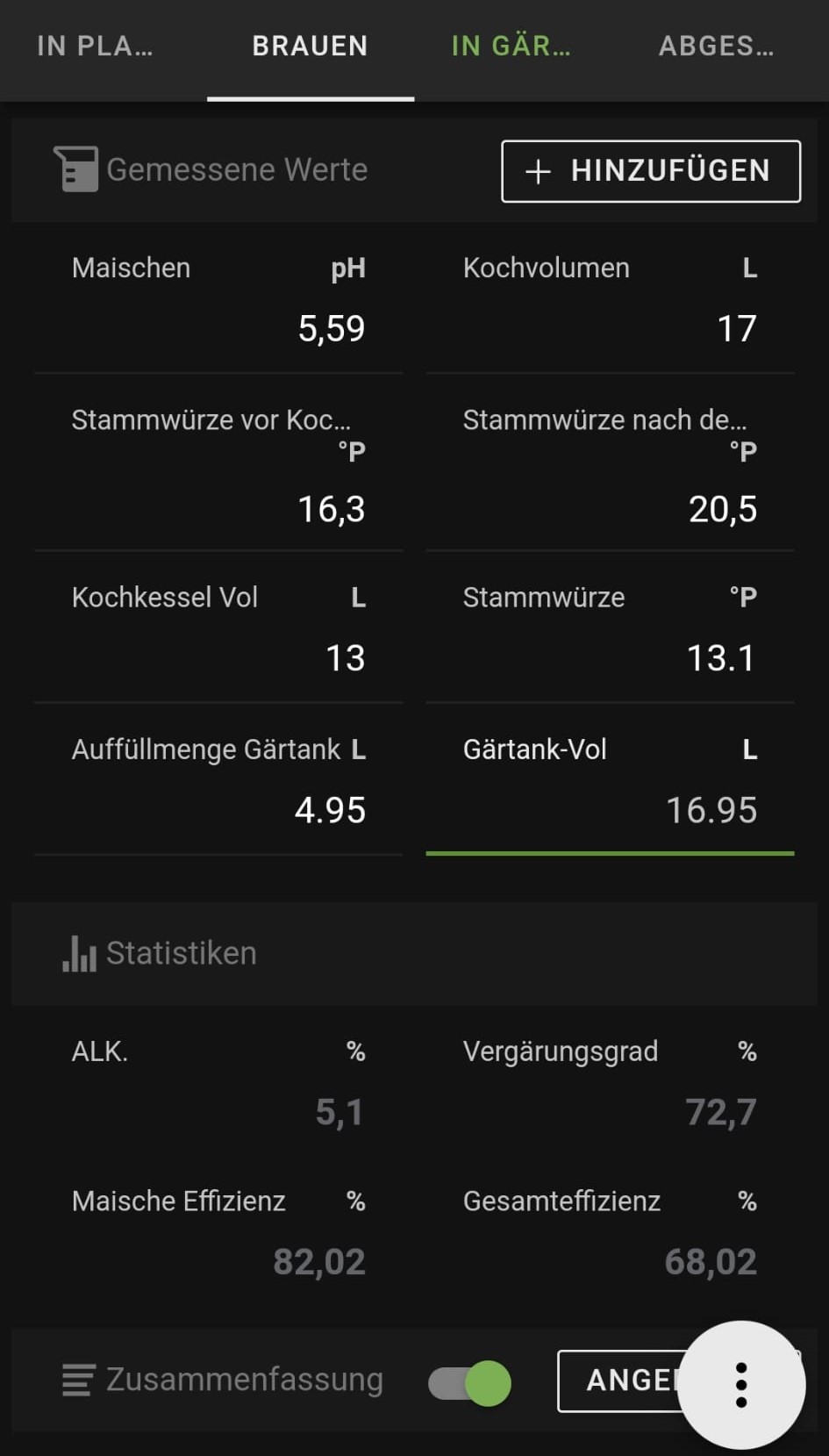 Mei letzter Sud auf der alten Anlage hatte ne Mash Efficiency von nur 59 %. Daher war ich so krass von dem Sprung überrascht!