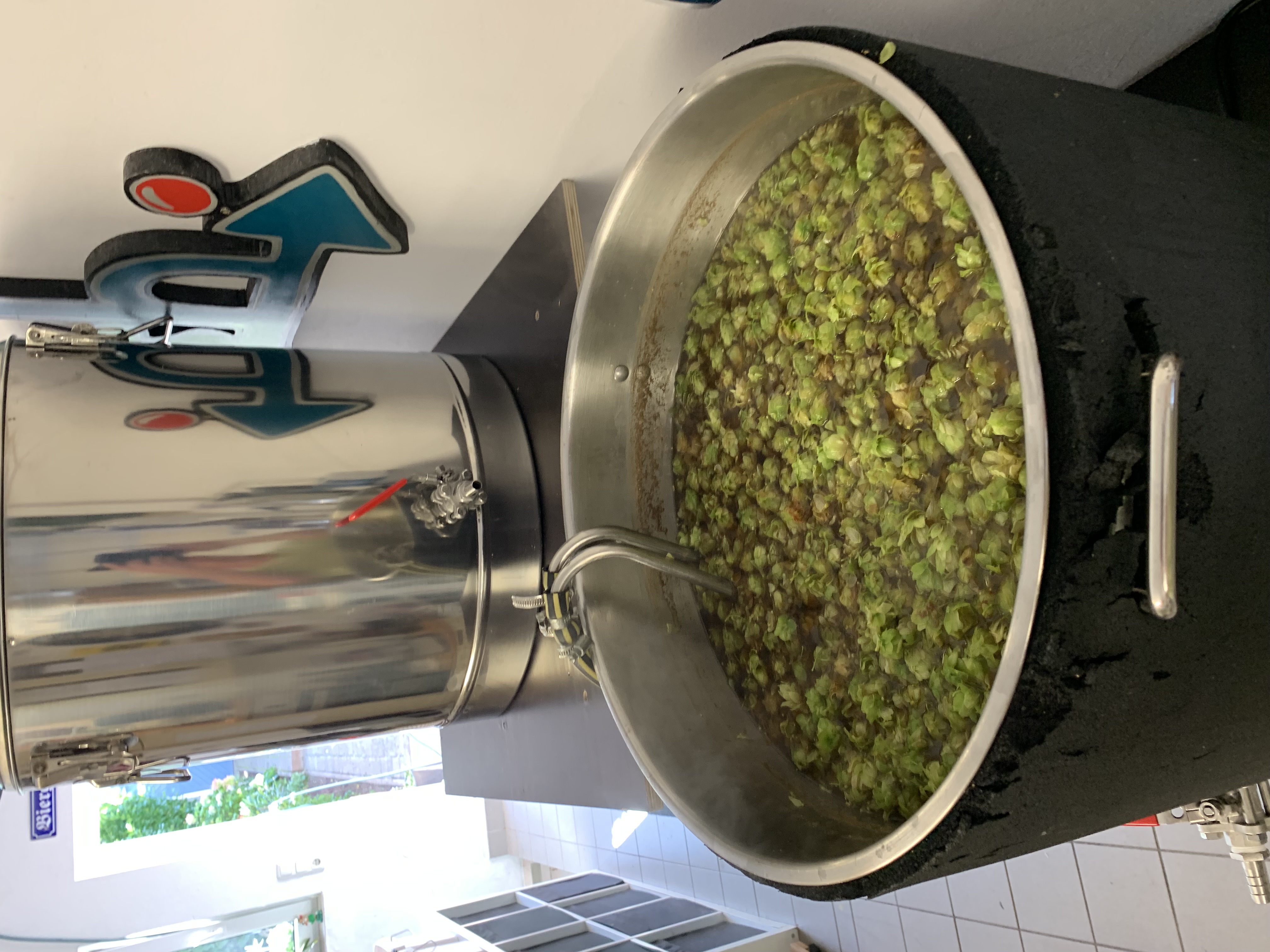 Ich habe heute den ganzen Tag über meine Tangopflanze geerntet. Im dritten Jahr heftig explodiert, so dass ich am Ende nicht alles geerntet habe. Ist aber auch so schon das dreifache von dem, was ich letztes Jahr hatte. 400g wurden direkt mit kochendem Wasser übergossen, um einen Heißauszug zu machen und nach Abkühlen in ein Bier gegeben, das am Sonntag gebraut wurde und mitten in der Gärung war. Werden 10L eines English IPA mit Single Hop Tango.