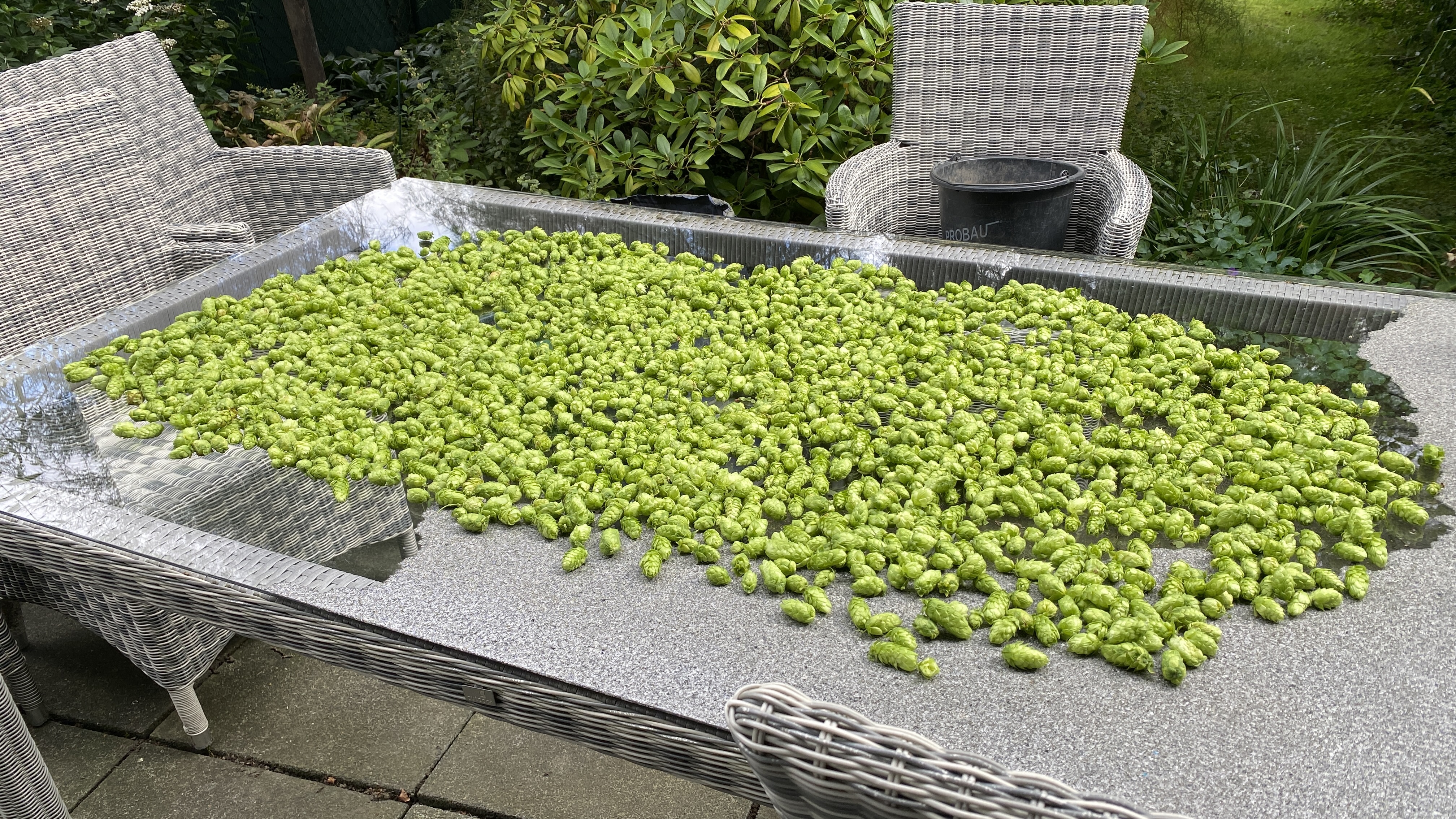 1.5kg werden jetzt langsam im Keller getrocknet, da ich ab morgen im Urlaub bin. Die Etage, in der ich die Dolden abgezupft habe, riecht immer noch nach Limette und Grapefruit.