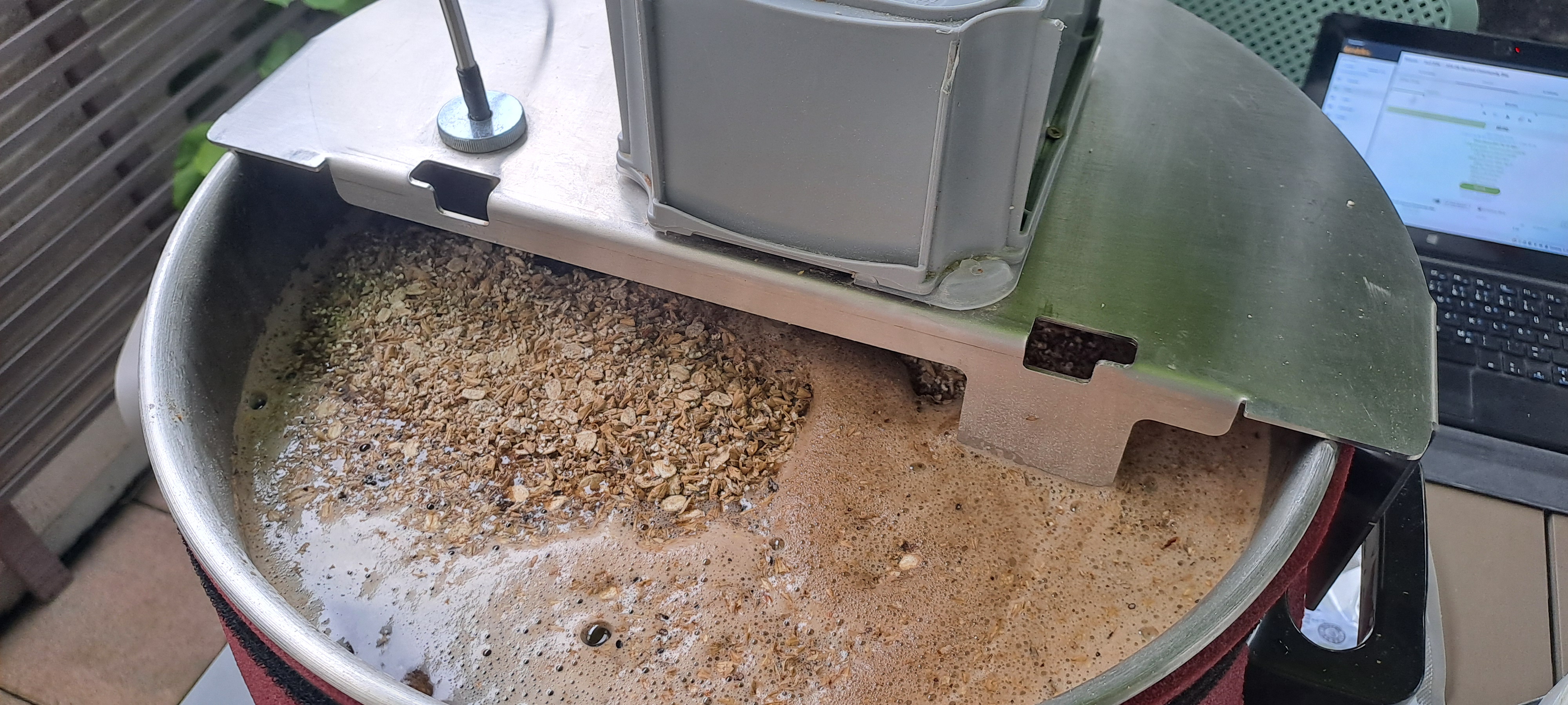 War komisch, nach längerer Zeit mit dem Malzrohr mal wieder mit Topf und Läuterbottich zu brauen. Merkbar mehr Arbeit, aber die Sudausbeute ist schonmal ne Hausnummer. Das Malzrohr packt um die 50-55, Handgerührt im Topf geht gut über die 60.
